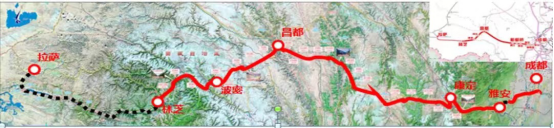 川藏铁路东起四川成都,西至西藏拉萨。其中,雅安-林芝段全长1018km,隧道密集,隧线比高达82%,高海拔隧道占比约75%,是世界上地质条件最复杂、建设难度最大的铁路工程。