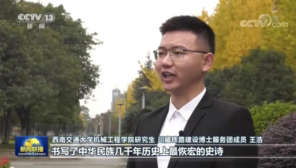 11月18日晚,中央电视台《新闻联播》节目播出题为《党的十九届六中全会在广大青年中引起热烈反响》的报道,球王会官网球王会体育研究生、川藏铁路建设博士服务团成员王浩接受采访并发表感想。