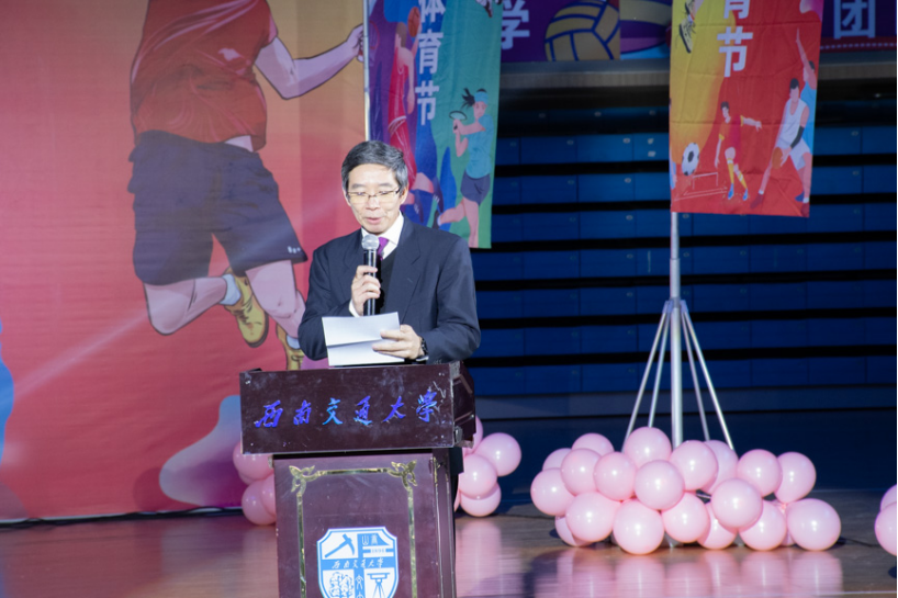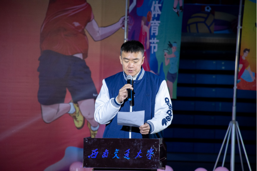 本次闭幕式在成都运达科技副董事长朱金陵的讲话下正式开始。他指出:全校学生和教职工的积极参与让我们见证了一场场精彩激烈的比赛,大量的工作人员无私奉献保证了体育节的顺利进行。正是有台前幕后的每一个人的参与才能实现本次体育节两个千的成就——比赛超千场、获奖超千人。