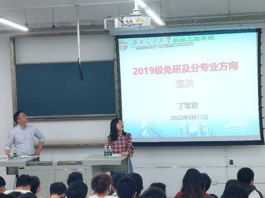 首先,由于同学们对免试研究生的相关政策缺乏了解,院长助理丁军君老师向在座的各位同学介绍了我院免试研究生的基本条件、工作程序和评议的加分项。