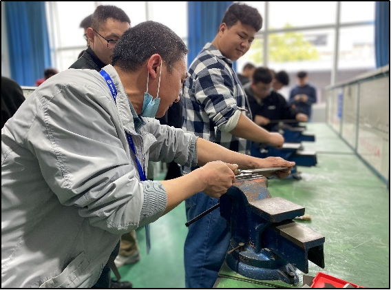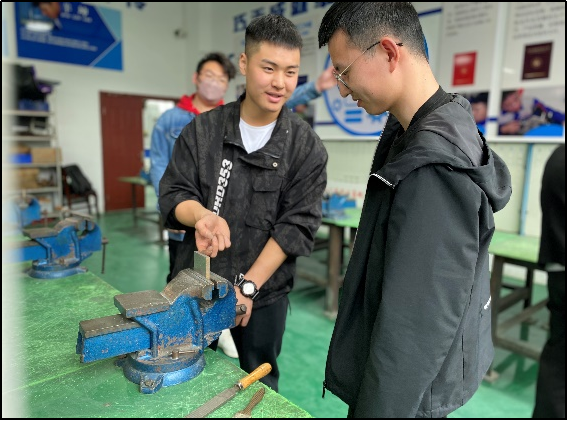 下午全体师生参观了绵阳市公共实训基地,包括全国第二届职业技能大赛现场(数控铣、数控车、装配钳工和CAD机械设计)赛场、实训基地工业机器应用于维护实训室,并由钳工教学老师为大家详细介绍了钳工的使用技能与注意事项,最后由同学们亲身体验钳工的操作过程,包括使用台钳安装夹取工件、扁锉使用方法和锯削的操作规范等。