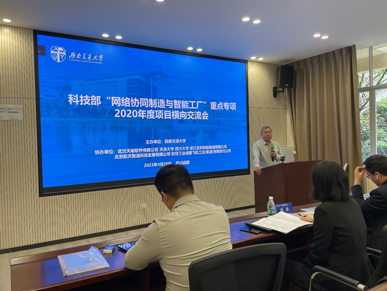 本次交流会由“1.5 面向产品全生命周期及闭环反馈的信息物理系统融合理论(2020YFB1708000)”项目负责人丁国富教授发起,共邀请同专项的4个项目参加,包括:“2.27 定制产品可视化智能设计与仿真验证关键技术及系统研发(2020YFB1711400)”、“2.31 规模化制造业多价值链协同云服务平台研发(2020YFB1711800)”、“2.35 基于工业互联的网络协同制造集成技术与平台研发(2020YFB1712200)”以及“3.1 面向航空航天产品制造过程的协同管控平台研发(2020YFB1712500)”。本次会议由球王会官网主办,武汉天喻软件有限公司、天津大学、浙江吉利控股集团有限公司、四川大学、北京航天智造科技发展有限公司、航空工业成都飞机工业(集团)有限责任公司以及其它项目参研单位共60余人通过线下、线上共同参与了此次交流会议。
