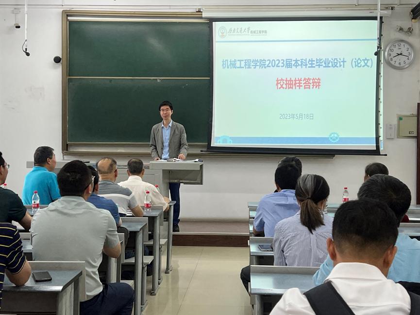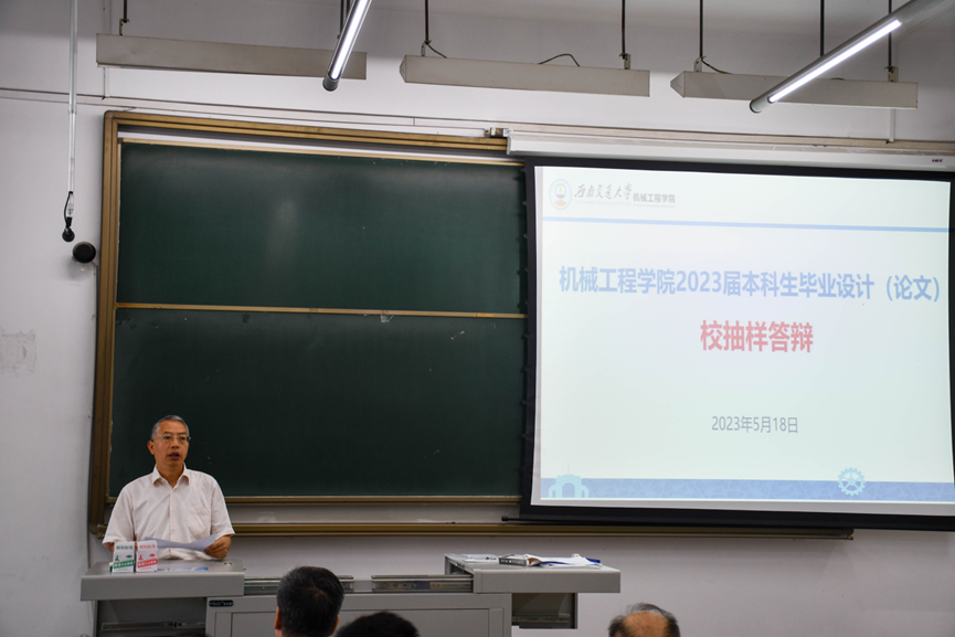 2023年5月18日上午,球王会体育2023届本科生毕业设计(论文)校抽样答辩在犀浦校区七号教学楼顺利举行。学院党委书记袁艳平,副院长田怀文,质保委主任程文明,质保委副主任杨美传,各系所主任、专业负责人及答辩学生指导教师参加了本次答辩。