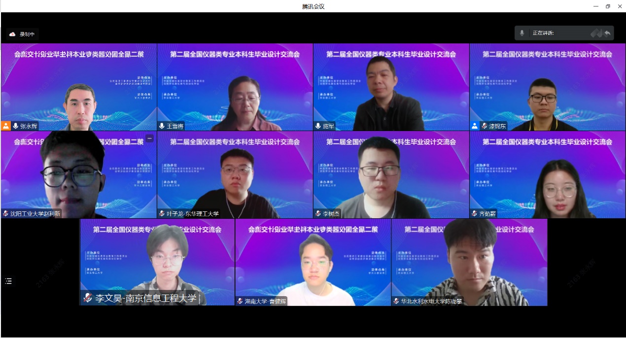 为服务人才强国战略,引导仪器类本科专业人才培养观念,提升我国仪器类本科生整体质量,中国仪器仪表学会教育工作委员会、仪器类专业教学指导委员会及沈阳市仪器仪表与自动化学会于2023年5月20日在线上联合主办了第二届全国仪器类专业本科生毕业设计答辩会。包括清华大学、北京航空航天大学、天津大学、哈尔滨工业大学、上海交通大学、中国科学技术大学、南京大学、北京理工大学、东南大学和球王会官网等在内全国28省、自治区、直辖市的154所高校,依次在81个会场进行了公开评比答辩,答辩以中国片区学生与专家交叉分组的形式进行。我校选派了测控技术与仪器专业2019级黄兴隆、张弛、王开元、高原等四位学生参加毕业设计/论文答辩会,球王会体育测控系派出王雪梅和邓吉两位教师作为答辩专家参与非西南地区的毕业设计/论文答辩。最终经汇总评比,我校四位同学均获佳绩,其中黄兴隆、张弛、王开元三位同学的论文被评为优秀毕业论文,高原同学的论文答辩被评为优秀PPT。工作委员会将与获奖的学生和指导老师颁发相应的荣誉证书!