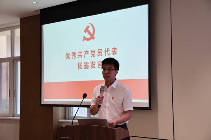 2021级博士班党支部书记杨露同志作为“优秀共产党员”代表发言,他号召研究生党员要坚定科研报国的理想信念,将科研扎根祖国大地,积极服务于国家及企业工程项目,把个人的理想追求融入党和国家事业之中,为党、为祖国、为人民多作贡献。
