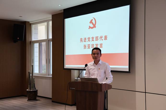 机关党支部书记张亚非同志作为“新冠疫情防控先进党支部”代表发言,讲述了在疫情来临时,机关党支部的同志们积极响应学院党委的号召,不惧风险、主动请缨,切实做到了把岗位当战位,守护师生健康安全,做好后勤保障的奋斗故事。