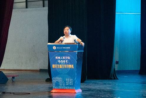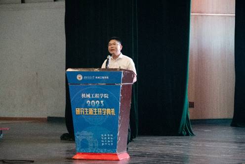大会第二项:学院党委书记袁艳平教授发表致辞。袁书记首先对81名博士研究生和439名硕士研究生表示了热烈欢迎,随后向新同学们介绍了学院的百年发展史和成就,之后与同学们分享了三点建议:一是潜心专注科研,实事求是、潜心钻研,创造出优质的、有价值的科研成果。二是理论联系实际,要坚持把论文写在祖国大地上,牢记“空谈误国,实干兴邦”的现实意义。三是心怀国之大者,发扬科学家精神,勇担时代责任和历史使命,将个人科学追求与党和国家事业发展紧密联系。最后,袁书记勉励同学们要努力在实现高水平科技自立自强和建设科技强国、人才强国的火热实践中建功立业,在以中国式现代化全面推进中华民族伟大复兴进程中奉献青春和智慧!