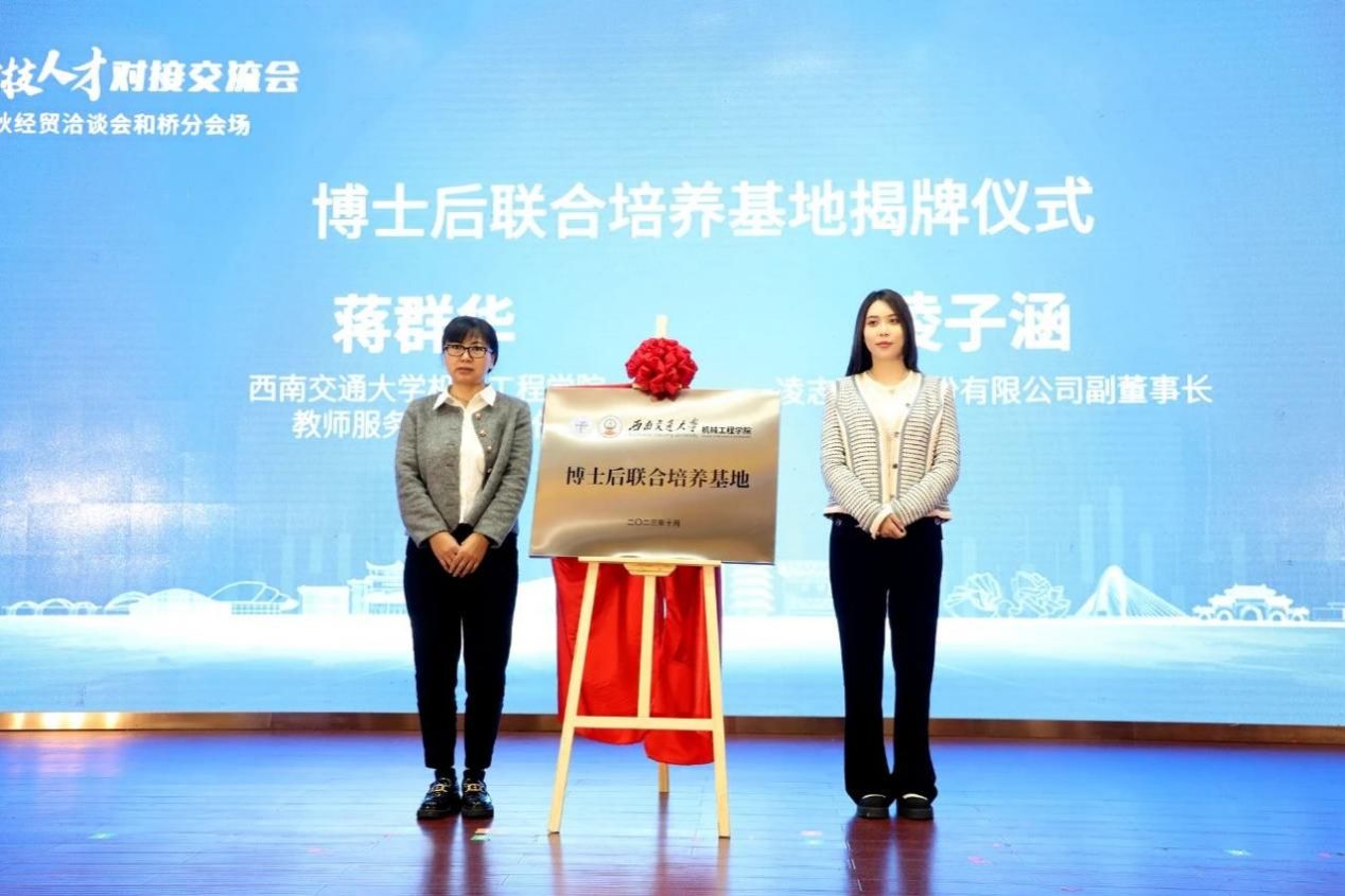 球王会官网球王会体育教服办主任蒋群华和凌志环保股份有限公司副董事长凌子涵为博士后联合培养基地揭牌。