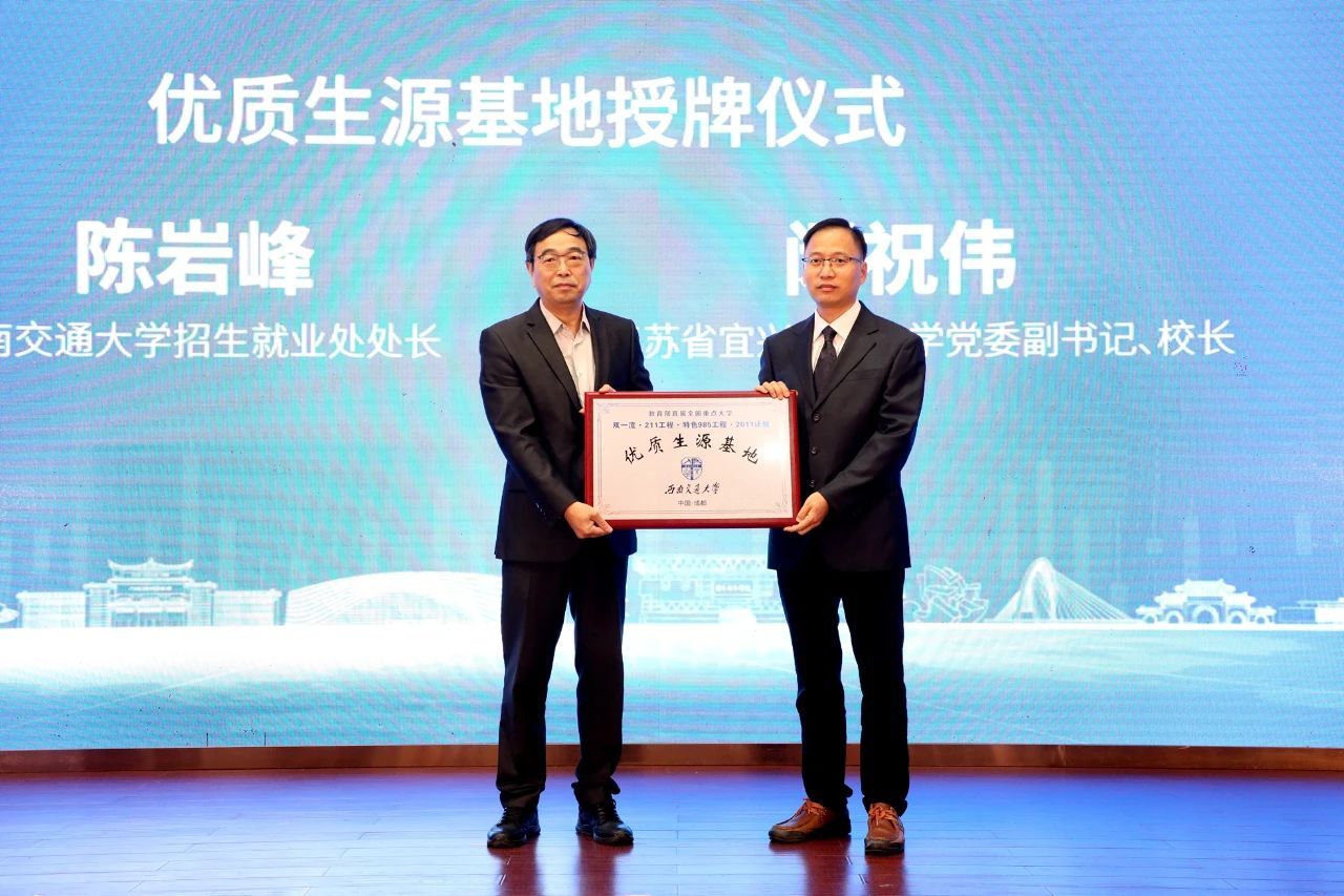 球王会官网招生就业处处长陈岩峰代表学校向江苏省宜兴第一中学授予优质生源基地。