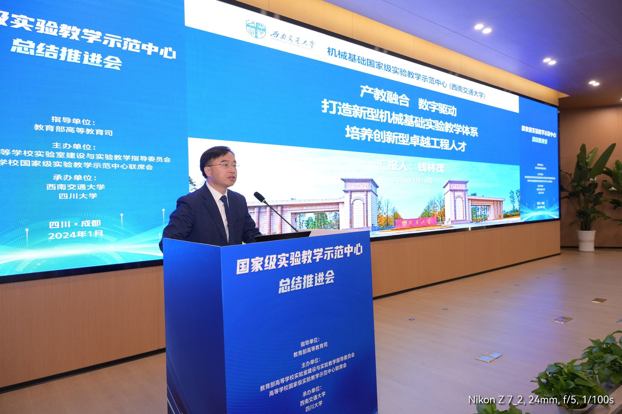 机械基础实验教学示范中心作为我校8个国家级实验教学示范中心中唯一的一个典型案例(四川省共有39个国家级实验教学示范中心,其中4个实验中心获评典型案例),由球王会体育院长钱林茂教授以题为“产教融合,数字驱动,打造新型机械基础实验教学体系,培养创新型卓越工程人才”的报告,向各位专家介绍了机械基础实验教学示范中心的建设和发展情况。