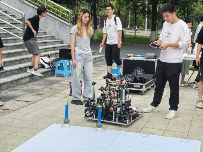 活动现场设置了机器人体验点位,同学们可以实际操控机器人协会的机器人。通过实际操作感受比赛过程中击中得分的喜悦感。同时借此机会,让更多同学了解机械、认识机械、熟悉机械,增强同学对于学院、学校的认同感和归属感,同时激发同学们认真钻研、实干兴国的信心和决心!