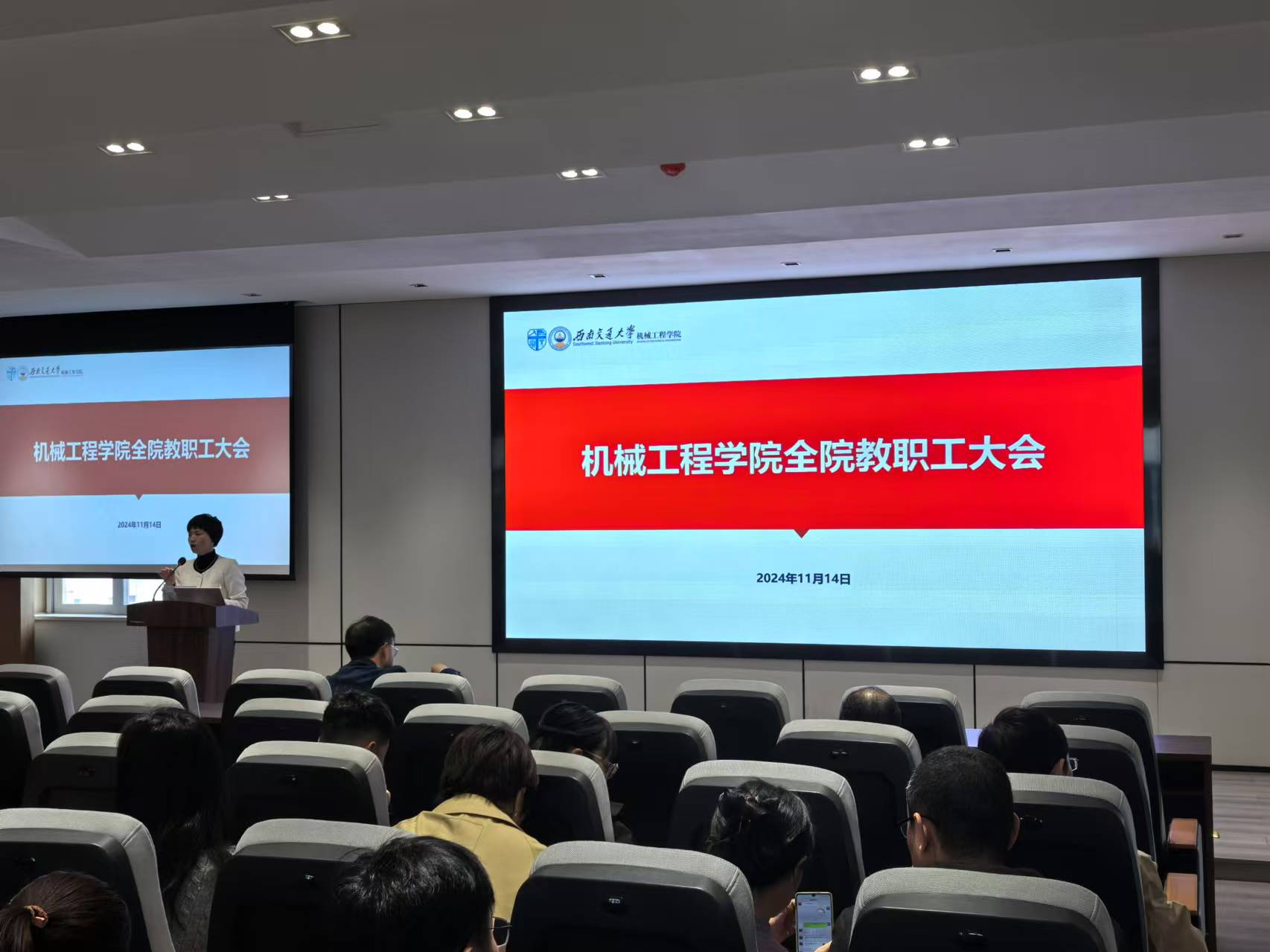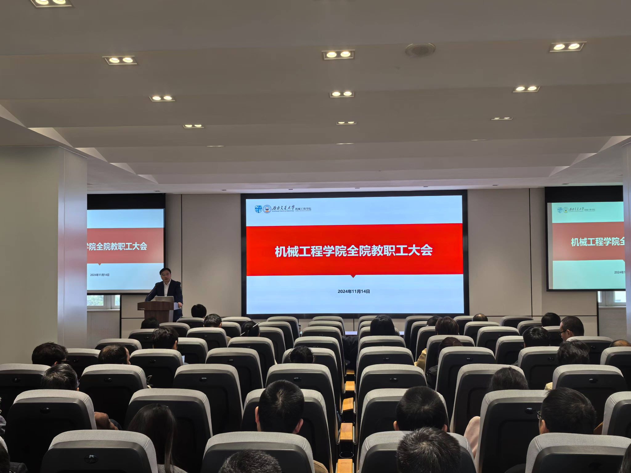 2024年11月14日下午,球王会官网球王会体育在机械馆J2530召开全院教职工大会。大会由学院党委副书记、纪委书记、副院长曾东红主持,学院院长钱林茂主讲,特别邀请科学技术发展研究院副院长李怀龙到场对教职工进行科研投标违纪案例的警示教育。