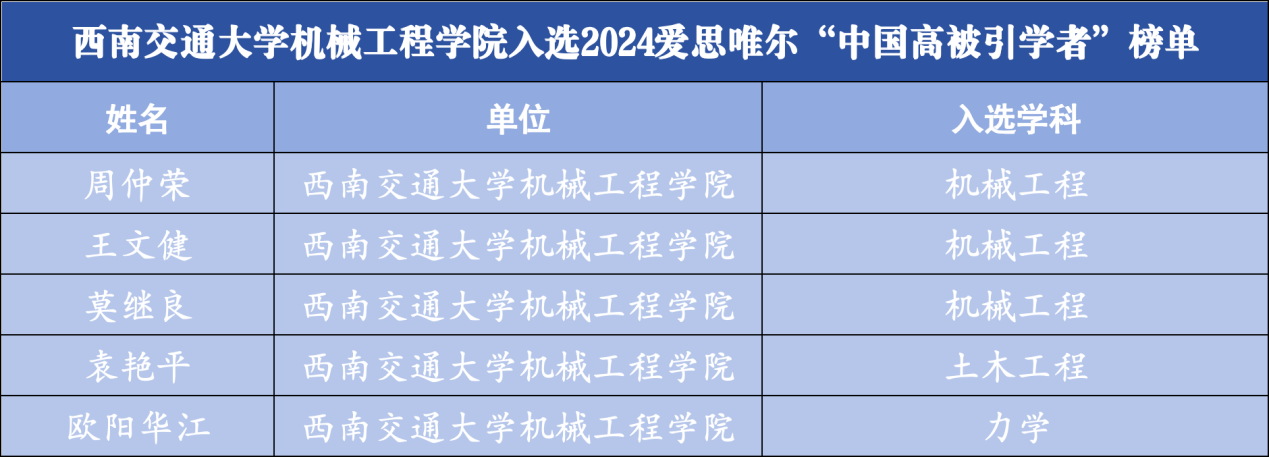 近日,爱思唯尔(Elsevier) 正式发布2024“中国高被引学者” (Highly Cited Chinese Researchers) 榜单,球王会官网球王会体育周仲荣、王文健、莫继良、袁艳平、欧阳华江等5位学者入选。