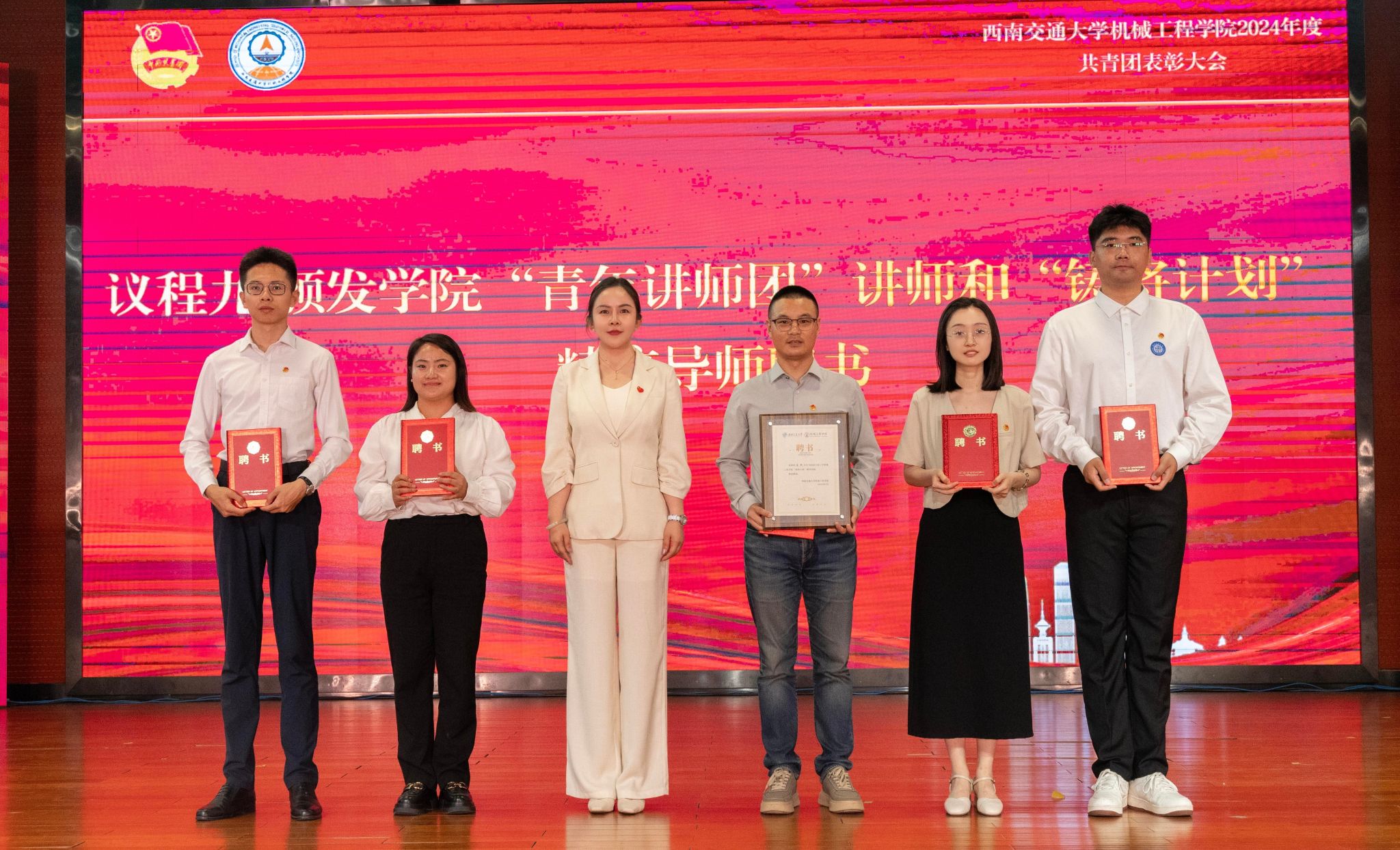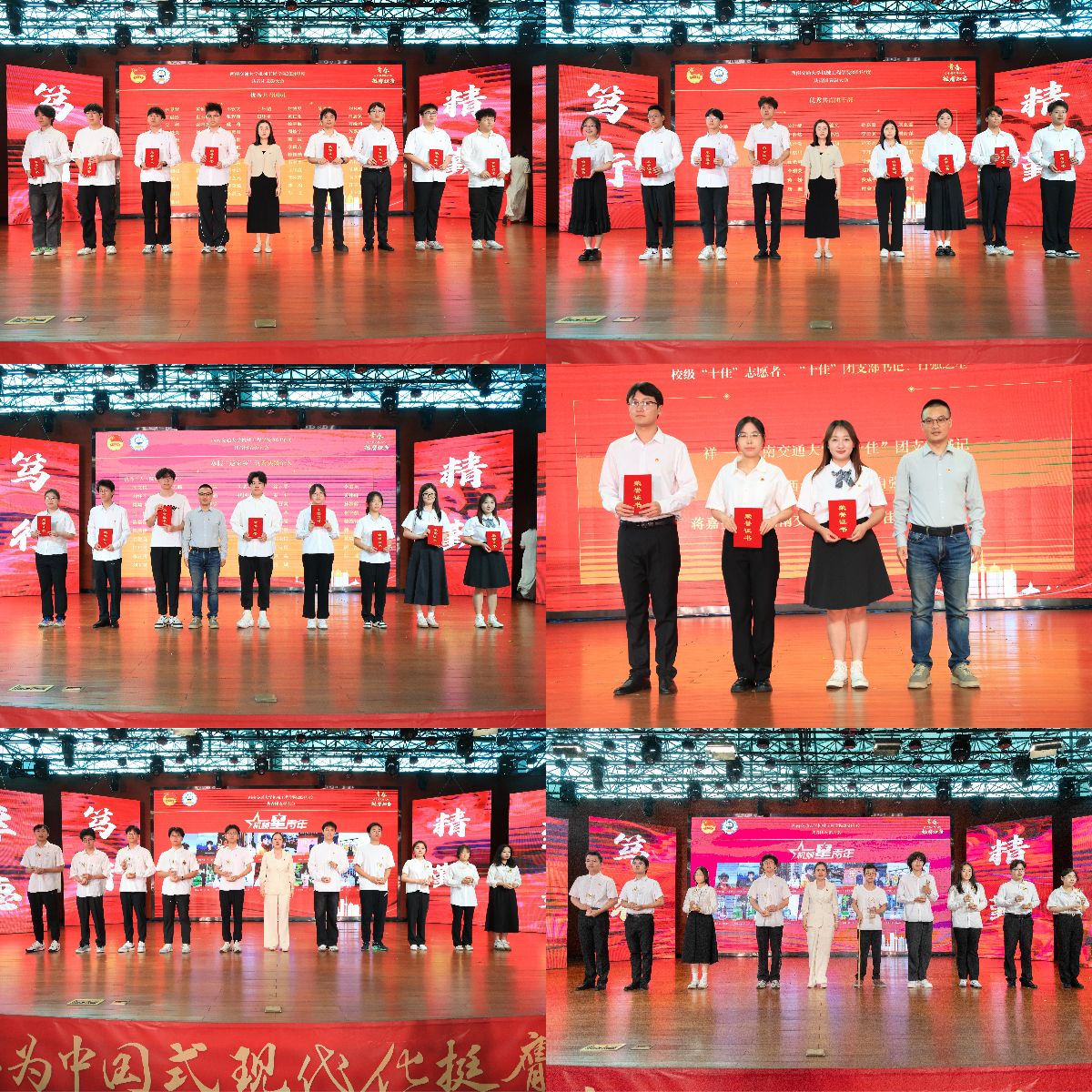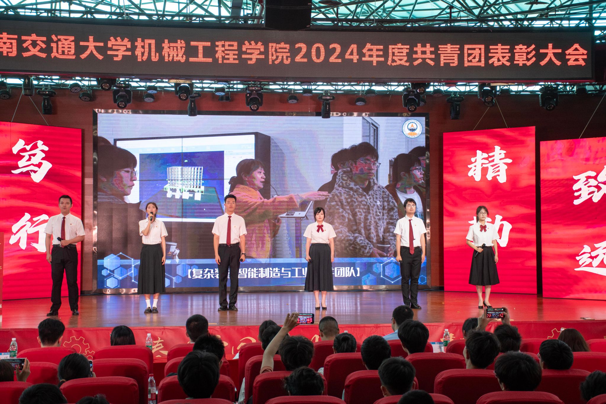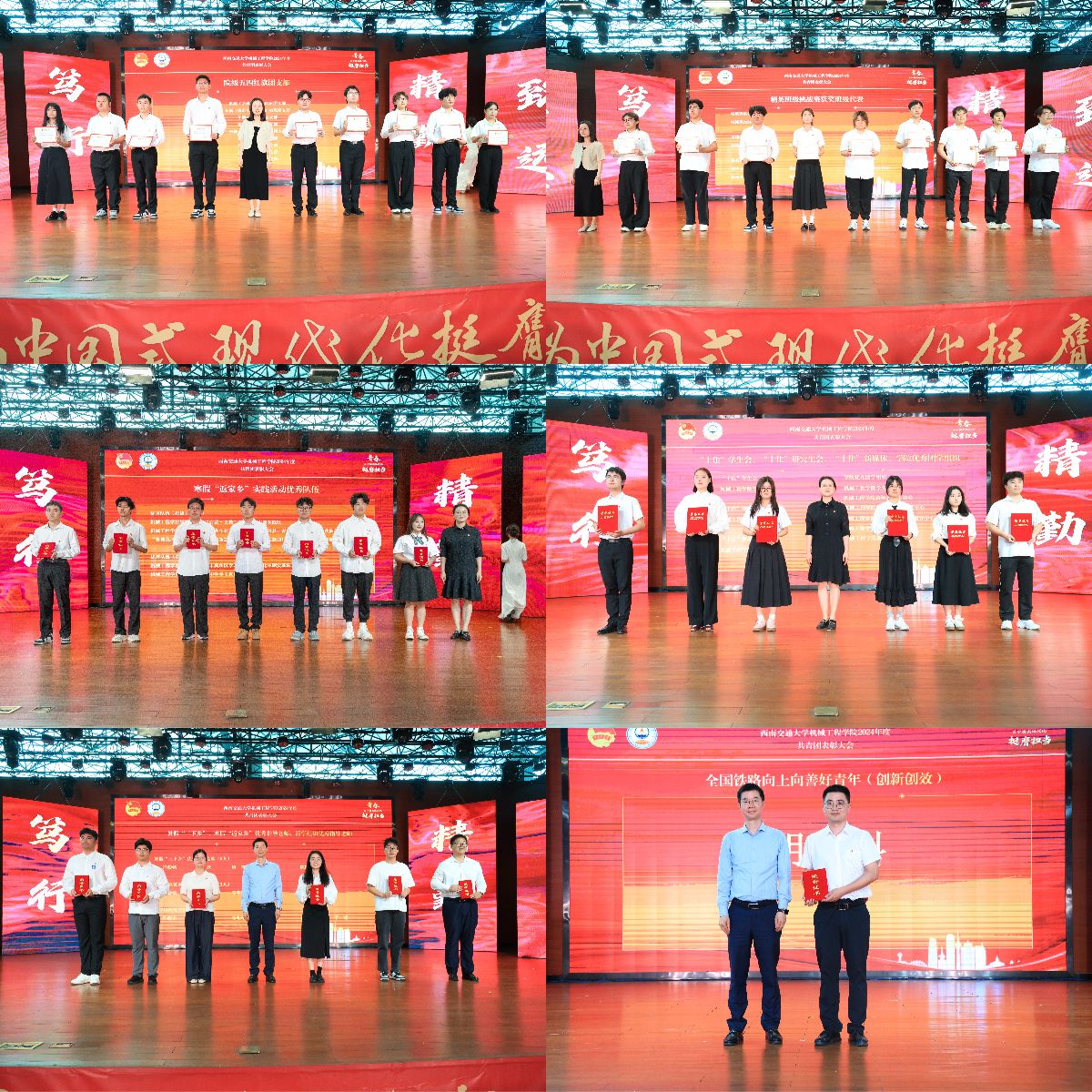 何蕊芯宣读了表彰决定。胡名科老师获“全国铁路向上向善好青年”称号,机械(茅班)2021-01班团支部等9个团支部获“球王会官网院级五四红旗团支部”称号;何金敏等58名同志获“球王会官网优秀共青团干部”称号;张景萱等85名同志获“球王会官网优秀共青团员”称号;球王会体育研究生会等3个团学组织获“球王会官网‘十佳’团学组织”称号;李祥等3名同志获“球王会官网‘十佳’个人荣誉”称号;马健翔等90名同志获“寒假‘返家乡’实践活动优秀个人”称号;5支队伍获“寒假‘返家乡’实践活动优秀队伍”称号,蒋嘉雯等45名同志获“暑假‘三下乡’实践活动优秀个人”称号,5支队伍获“暑期‘三下乡’实践活动优秀队伍”称号。球王会体育学生会等6个团学组织获“学院优秀团学组织”称号,陈晓宇等6名老师获“学院优秀团学组织指导老师”称号,罗家豪等20名同志获“机械‘星’青年”称号,机械类2024-07班等9个班级获“‘星火燎原杯’精英班集体”称号。与会嘉宾和领导为获奖集体和个人代表颁奖。