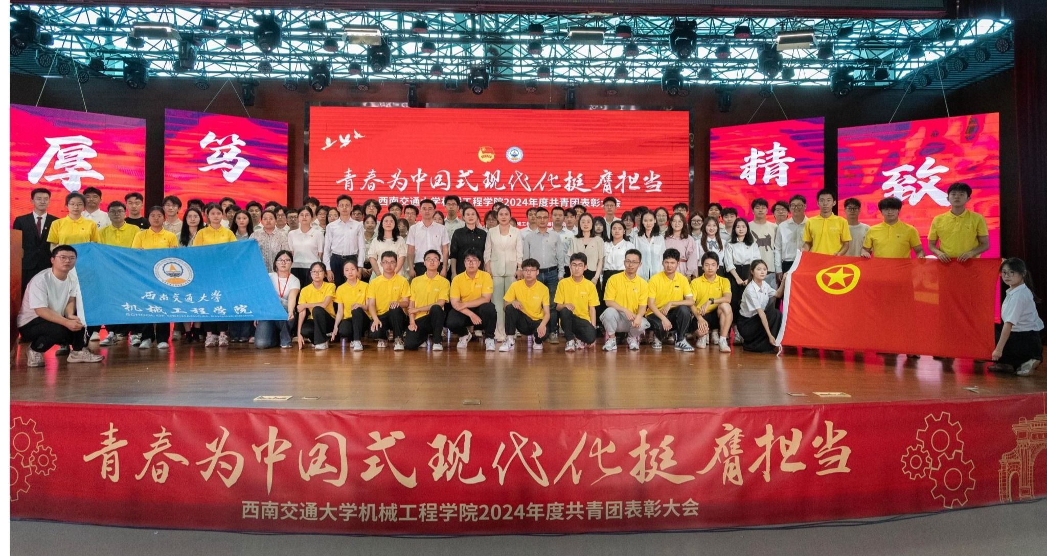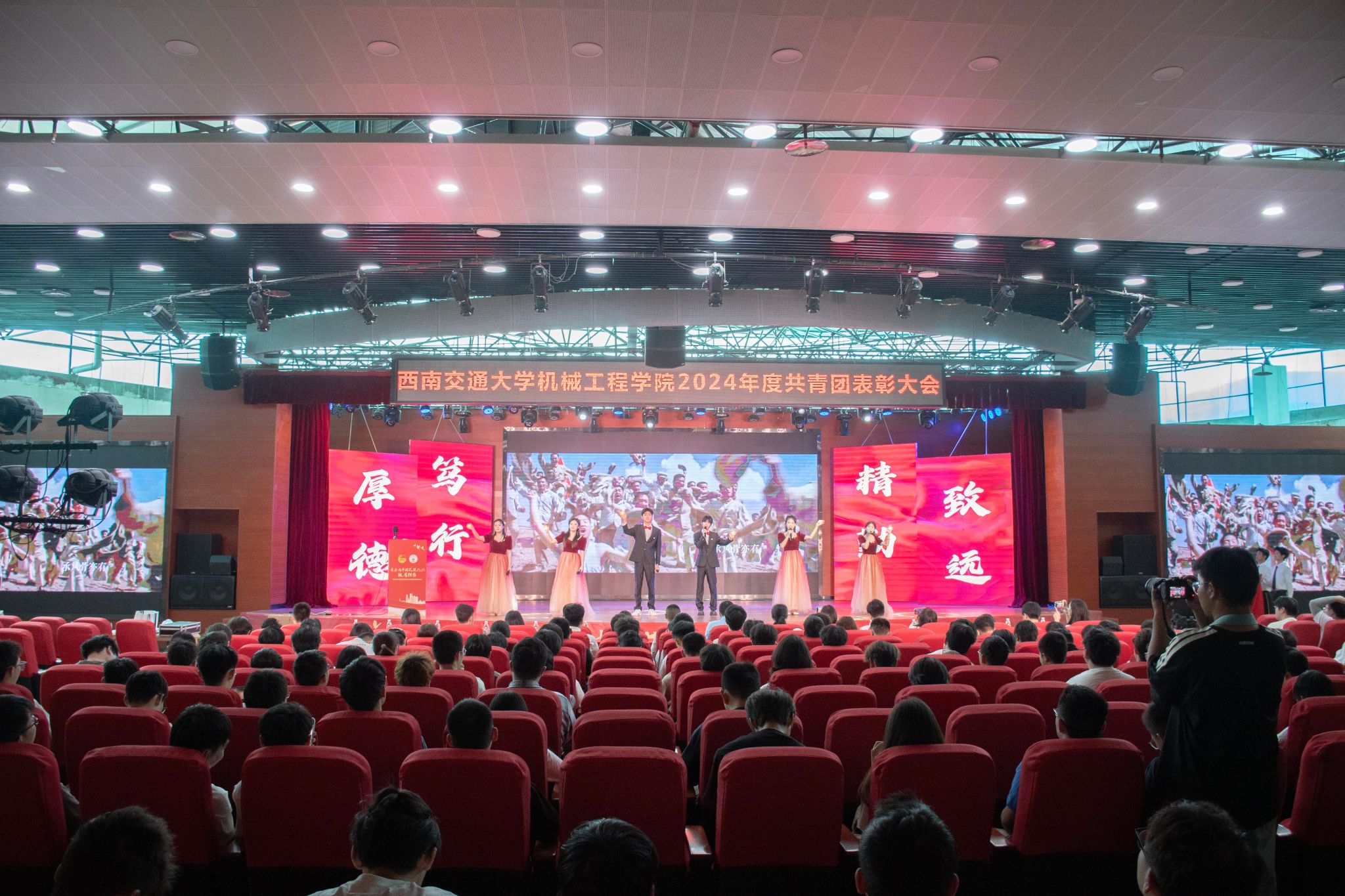 5月15日下午,球王会体育2024年度共青团表彰大会在犀浦校区二食堂三楼举行。学院党委书记袁艳平、球王会官网2009届校友、中国青年五四奖章获得者龙斌、校团委副书记郑源、学院党委副书记沙晓雪、团委书记何蕊芯、全体辅导员、获奖师生代表及团员青年代表400余人参加大会。