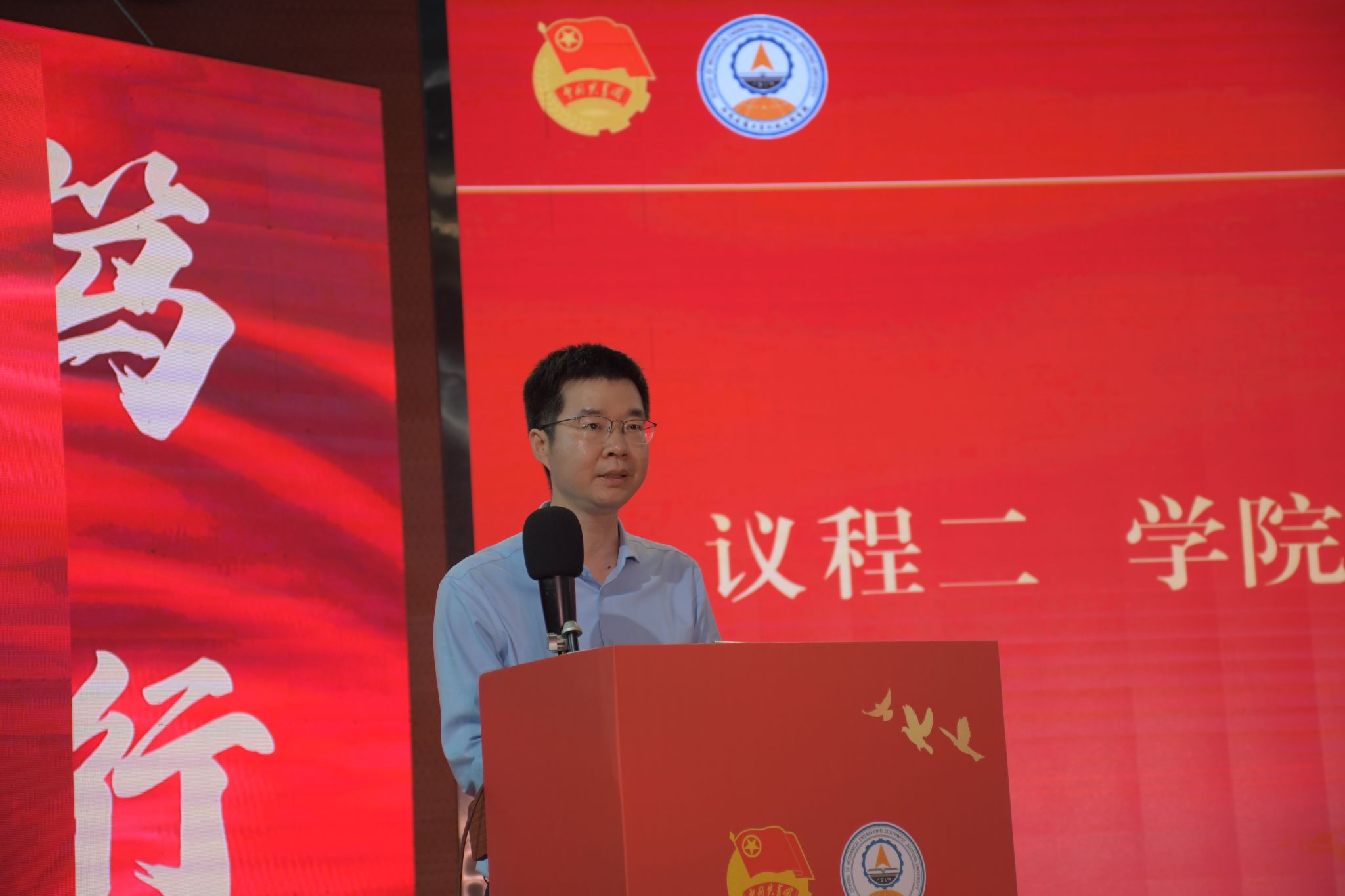 袁艳平代表学院党委向奋战在青年工作战线的各位老师表示慰问,向受到表彰的集体和个人表示祝贺,向返校参加学校129周年校庆的校友表示欢迎。他指出,学院党委高度重视共青团和青年工作,坚持“党建带团建”,推动学院共青团工作呈现出蓬勃发展的良好态势。他充分肯定了学院共青团在过去一年取得的优异成绩,并对学院团委和广大团员青年提出了三点希望:一是要坚定理想信念,做志存高远的追梦人;二是要勇于创新创造,做开拓进取的排头兵;三是要有坚韧不拔的勇气,始终以“竢实扬华,自强不息”的交大精神为指引。