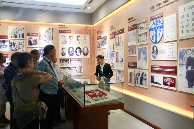 来到校史馆,早已等在那里的工作人员迎了上来,对校友们来校史馆参观表示欢迎。一进校史馆首先映入眼帘的是“东方红”号机车,代表了交大的特色与优势。校史馆的工作人员从交大的起源山海关铁路学堂一直讲到今天的交大,其中校友们最感兴趣的是峨眉时期的历史,因为那是他们的大学时光,他们都能认出墙上照片中的同学与老师,看着墙上的老照片,他们都能说起当年的时光记忆,其中一个校友说:“那会儿学校的体育系非常的强,我们全校的师生都很佩服他们,那会儿有摔跤,我是练体操的”。