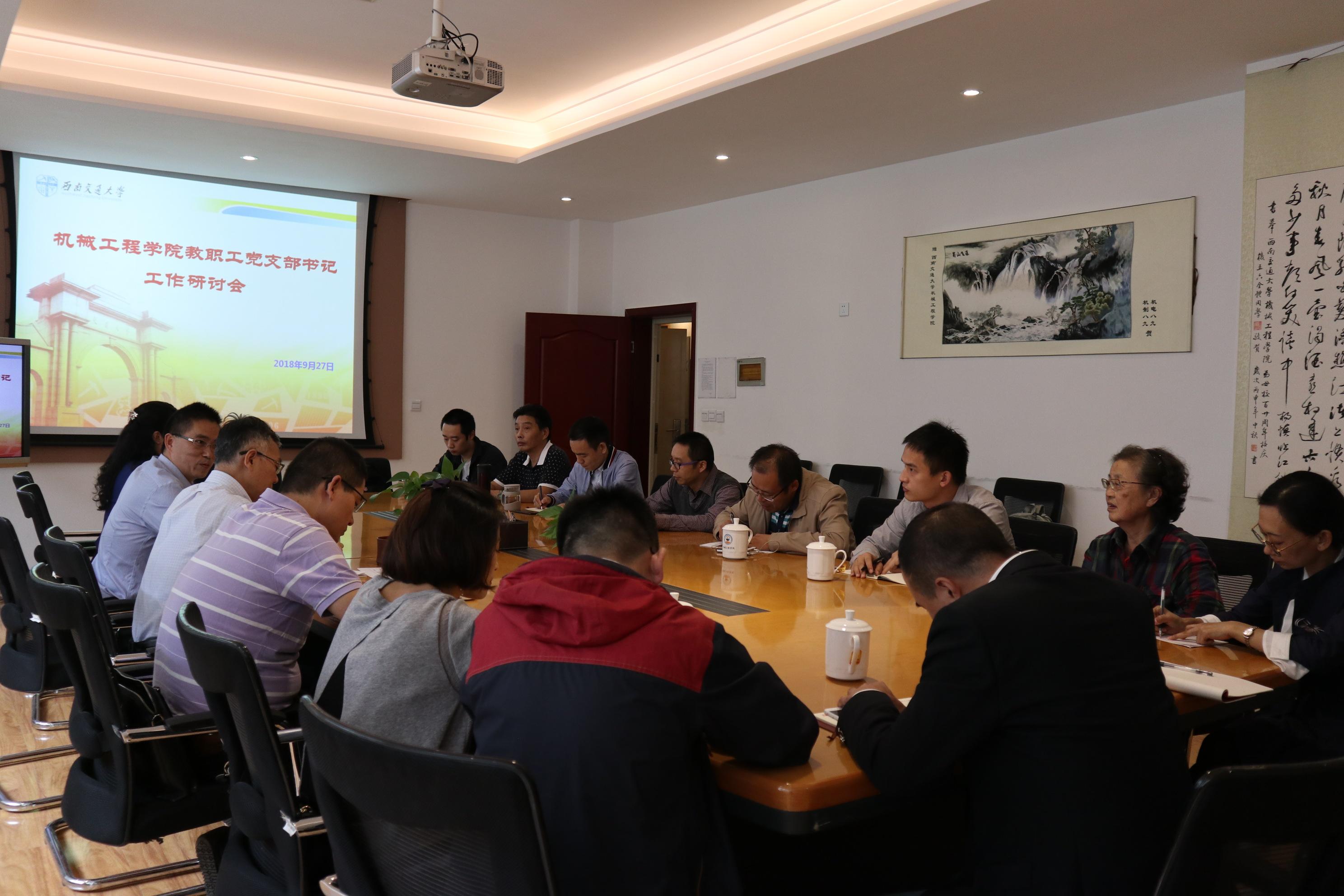 9月27日下午,球王会体育在九里校区2206会议室召开教职工党支部书记工作研讨会。本次会议由学院党委副书记程军主持,球王会体育党委书记董大伟,纪委书记、党委副书记李毅,党务秘书梁艳以及全体教职工党支部书记出席了本次会议。