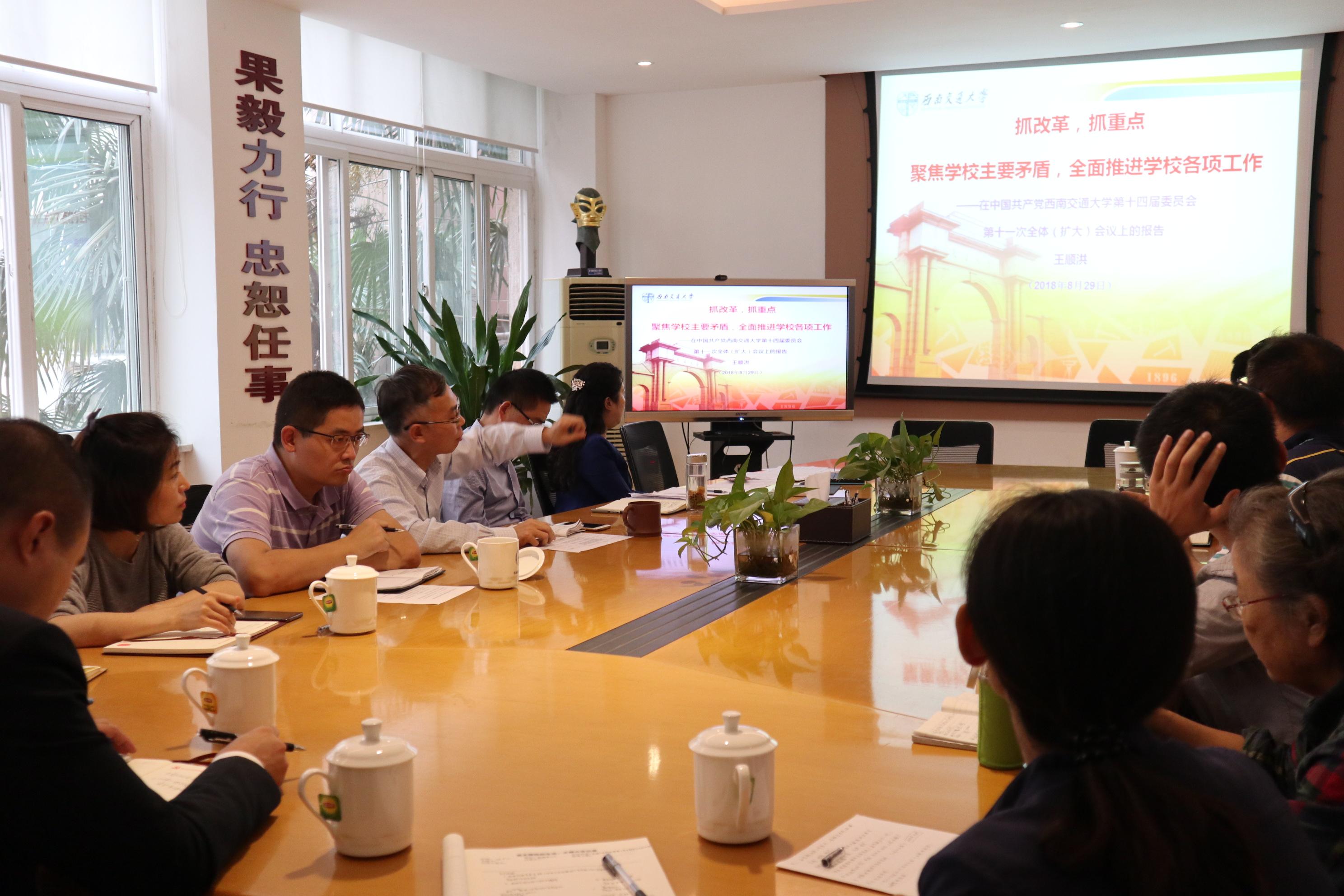 最后,董大伟书记传达了中共球王会官网十四届十一次全体(扩大)会议精神并做总结讲话,董书记强调指出,学院本学期将聚焦学校面临的两个主要矛盾,即“国家‘交通强国’、教育强国’与‘一带一路’倡议对大交通人才和科技的需求与我校的有效供给不足的矛盾”与“师生和校友对美好生活的追求与学校给予的有效帮助不足的矛盾”,重点落实好五项工作:具体包括:党建、文化建设百年校庆;全面一流学科建设;成峨一体化和综合体制改革;全面加强人才引进与培养;大力推进科研工作。希望教职工党支部充分发挥好党支部的战斗堡垒作用和党员的先锋模范作用,为学院的改革和发展努力奉献。