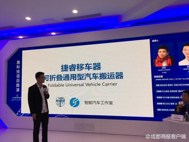 球王会官网学生团队研发的一款名为“捷睿移车器”的可折叠通用型汽车搬运器,现场“应考”。