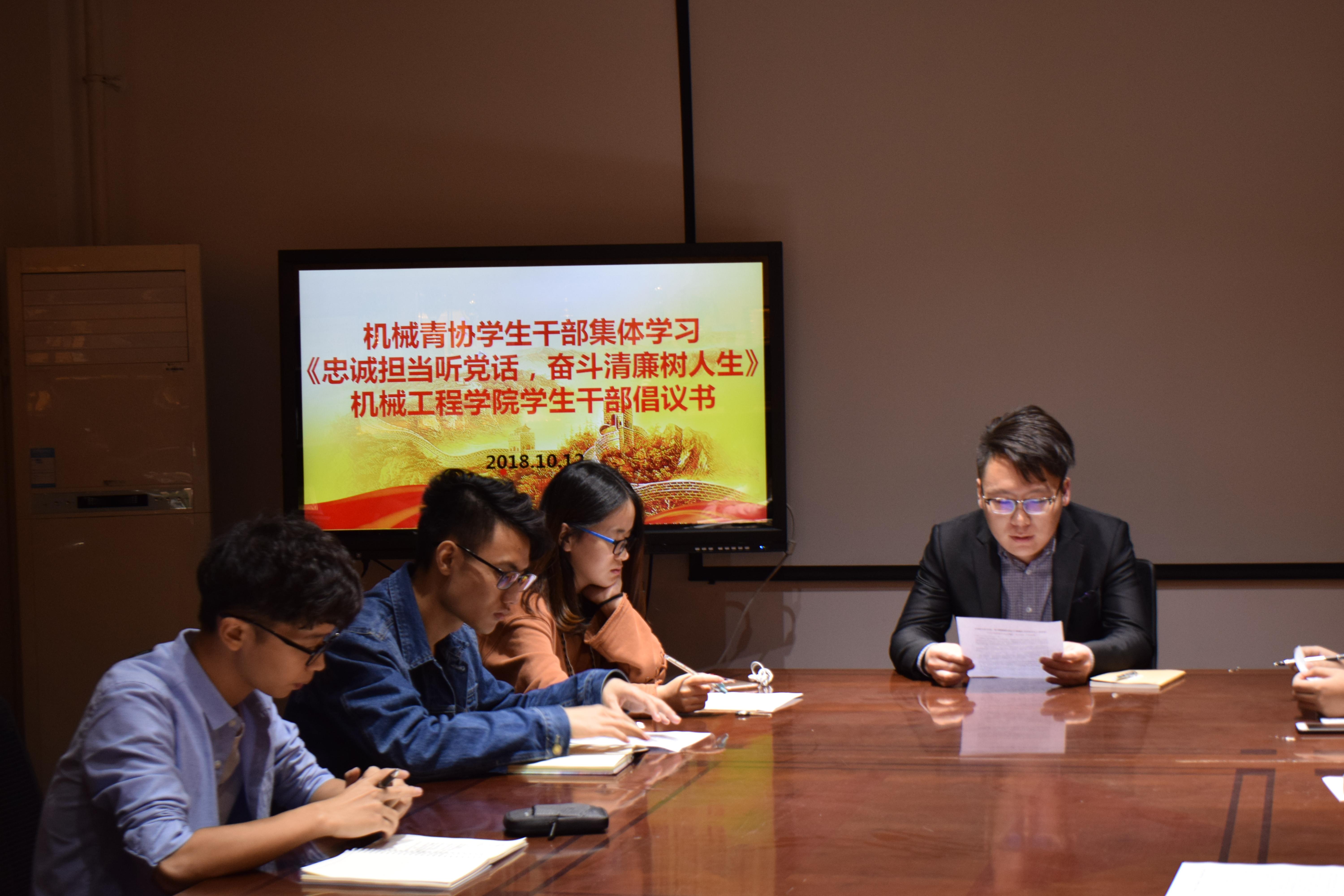 忠诚担当听党话,奋斗清廉树人生——机械青协学生干部集体学习《忠诚担当听党话,奋斗清廉树人生——球王会体育学生干部倡议书》