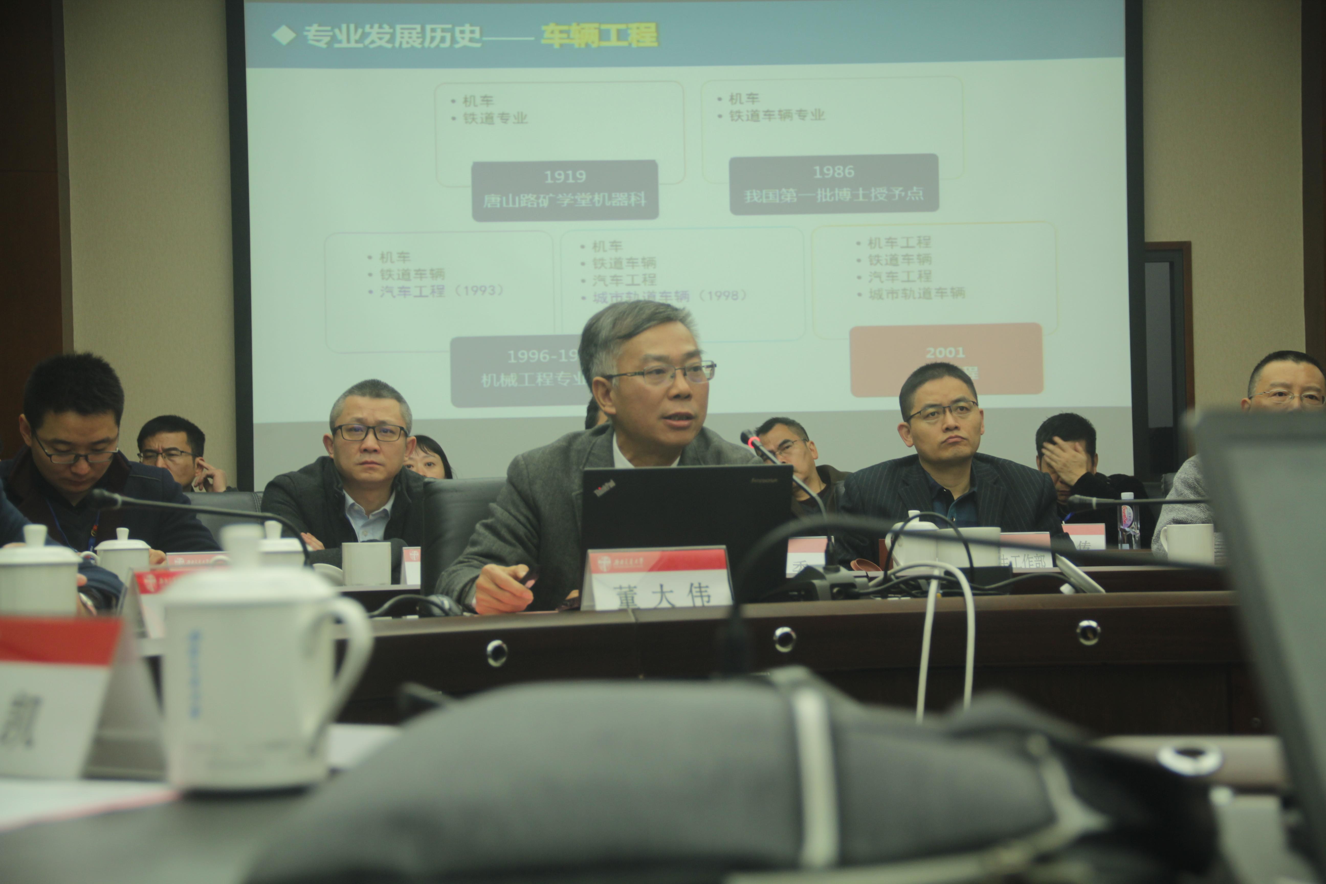 随后,专家组组长房海蓉教授主持会议,首先阐述了入校考察的目的,即核查车辆工程自评报告的真实性,并对已开展的自评工作提供补充意见。接着邀请专业负责人董大伟教授对报告中未提到的部分进行补充说明,董教授从车辆工程专业沿革、专业优势特色、专业发展与升华三方面展开进行介绍,就车辆工程专业发展历史、专业需求、师资力量、课程资源、教育平台、学生质量、教学改革、工程实践能力及毕业要求出口等多方面进行了详细阐述。