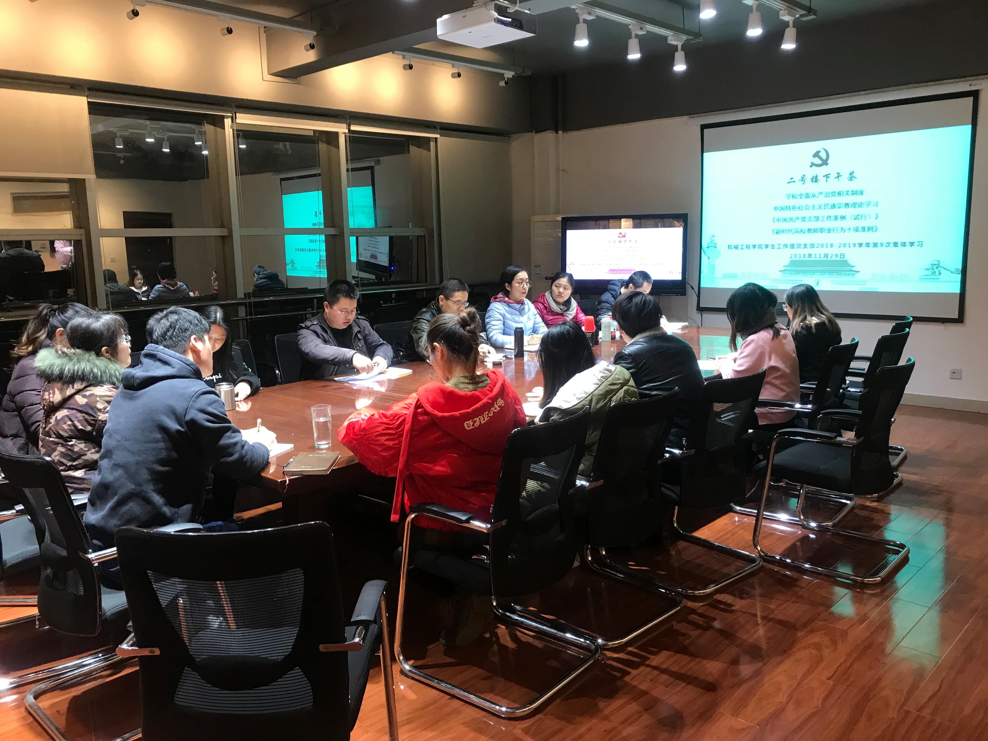 中共中央近日印发了《中国共产党支部工作条例(试行)》(以下简称《条例》),教育部印发了《新时代高校教师职业行为十项准则》,学校印发了《中国特色社会主义民族宗教理论知识手册》,学校召开的第十四届委员会第103次常委(扩大)会议审定了《中共球王会官网委员会关于落实全面从严治党党委主体责任和纪委监督责任的实施办法(试行)》、《中共球王会官网委员会关于践行监督执纪“四种形态”的实施办法(试行)》、《中共球王会官网委员会关于纪检监察机构“转职能、转方式、转作风”的实施办法(试行)》、《中共球王会官网委员会关于贯彻执行<中国共产党问责条例>的实施办法(试行)》、《中共球王会官网委员会关于职能部门和单位发现违纪违法问题线索移送纪检监察部门的实施办法(试行)》(以下简称“五个制度”)。为全面深入领会各文件精神,11月29日晚18点30分,学生工作组党支部在X2201召开专题学习会学习了相关文件。会议由学生工作组党支部书记于楠同志主持,党支部全体成员参与。