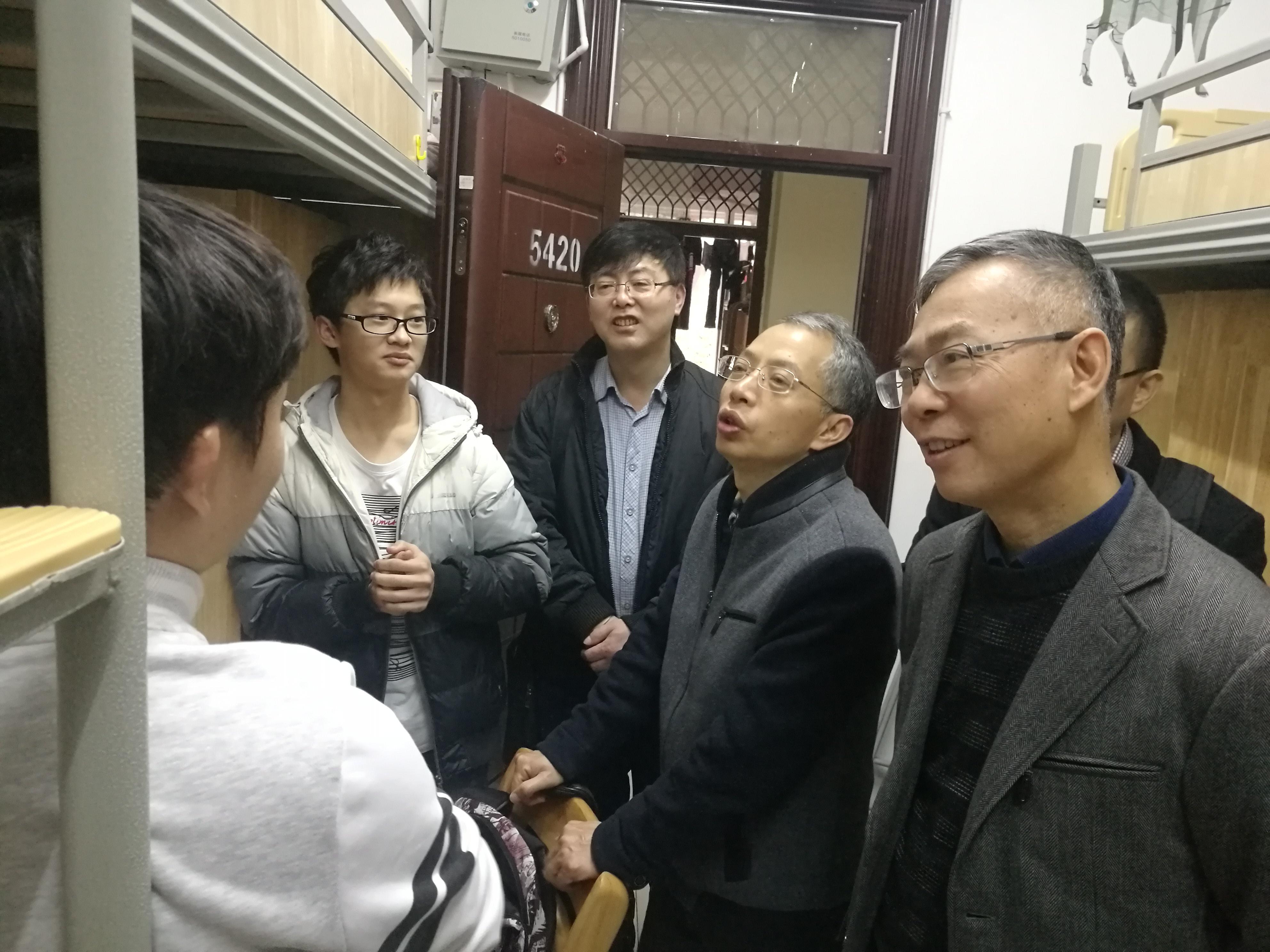 学院党政心系峨眉交控系的学生,为深入了解学生的学生、生活情况,董大伟书记同党政班子成员一起走访了交控系学生宿舍,并与学生们进行了亲切交谈。“生活还有不习惯的吗?平时课程紧张吗?学习是否有困难?经常锻炼身体吗?”“毕业后有什么打算?”每到一间宿舍,董大伟书记都关心询问同学们的学习、生活、就业等各方面情况。他鼓励同学要志存高远,继续努力,相互帮助,共同进步,同时提醒同学要注意身体健康,加强锻炼。让学生们感受到了学院的温暖关怀,备受鼓舞。