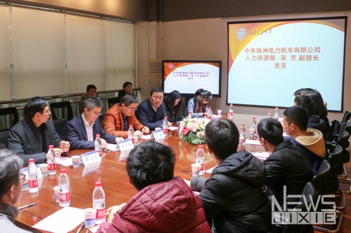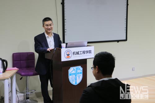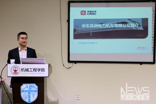报告的开始,毛业军副总监在播放了关于中车中车株机的宣传片之后,通过PPT展示了中车株机在有关领域的历史和突出贡献,并且对当代大学生提出了“应该做什么”的指向性意见。在最后的提问环节,同学们踊跃提出关于机械专业就业方向、交通运输装备未来的发展、中车株机技术上的优势等问题,毛业军副总监热情回答同学们提出的问题并提出了许多具有指导性的思考。