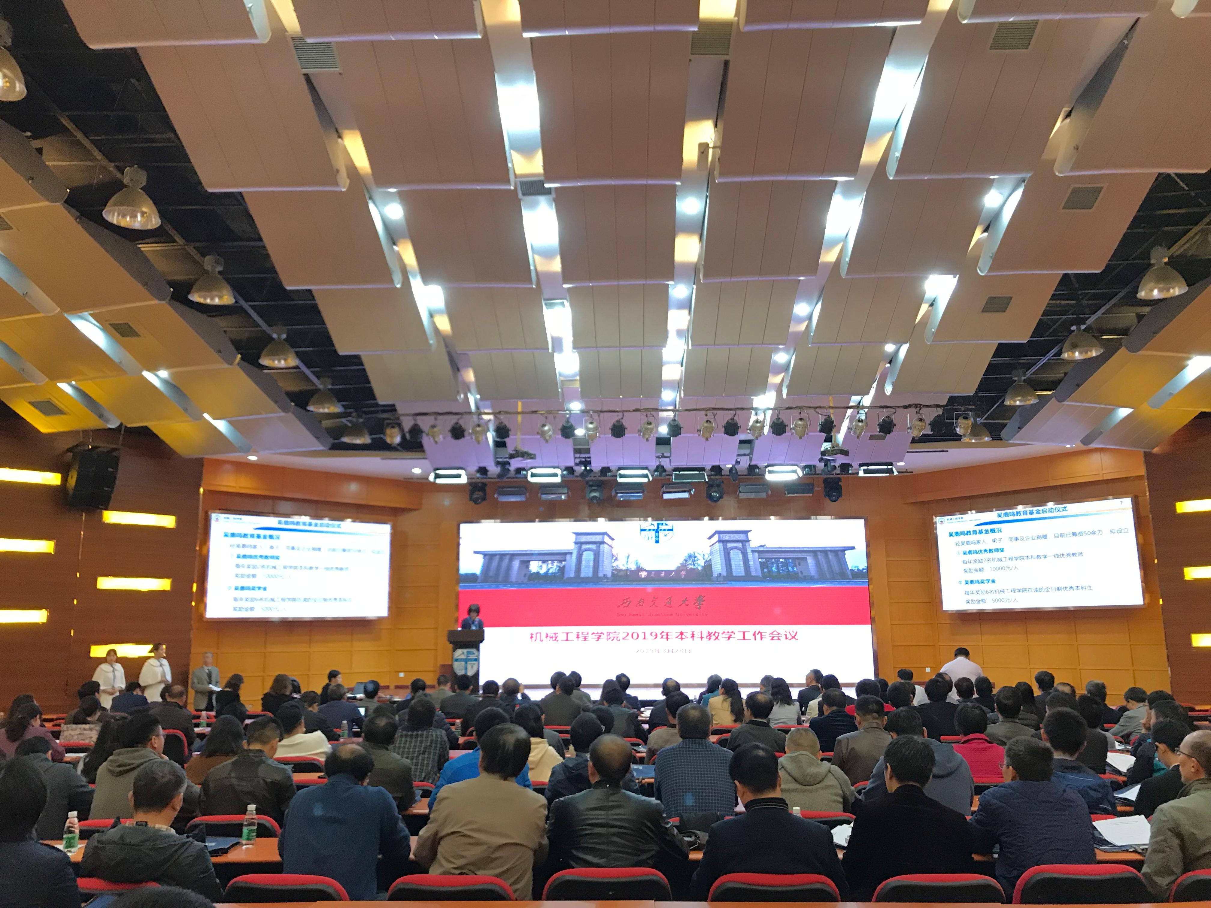 会议正式开始前,为纪念对本科教学工作做出卓越贡献的吴鹿鸣教授,举办了吴鹿鸣教育基金启动仪式。战凤书记介绍“吴鹿鸣教育基金”的筹备情况,吴鹿鸣教授夫人高淑英教授介绍了吴大师关于教育基金设立的初衷。副校长周仲荣在致辞中介绍吴鹿鸣教授为中国教育界极为优秀的教育家,在吴鹿鸣教授的一生中,多次主持国家级项目,取得了丰硕的成果,为球王会官网乃至中国教育界做出了不可磨灭的贡献。吴鹿鸣教育基金奖励球王会体育本科教学一线优秀教师及全日制优秀本科生,旨在激励机械学院师生不懈努力,为机械学院的发展做出更大的贡献。