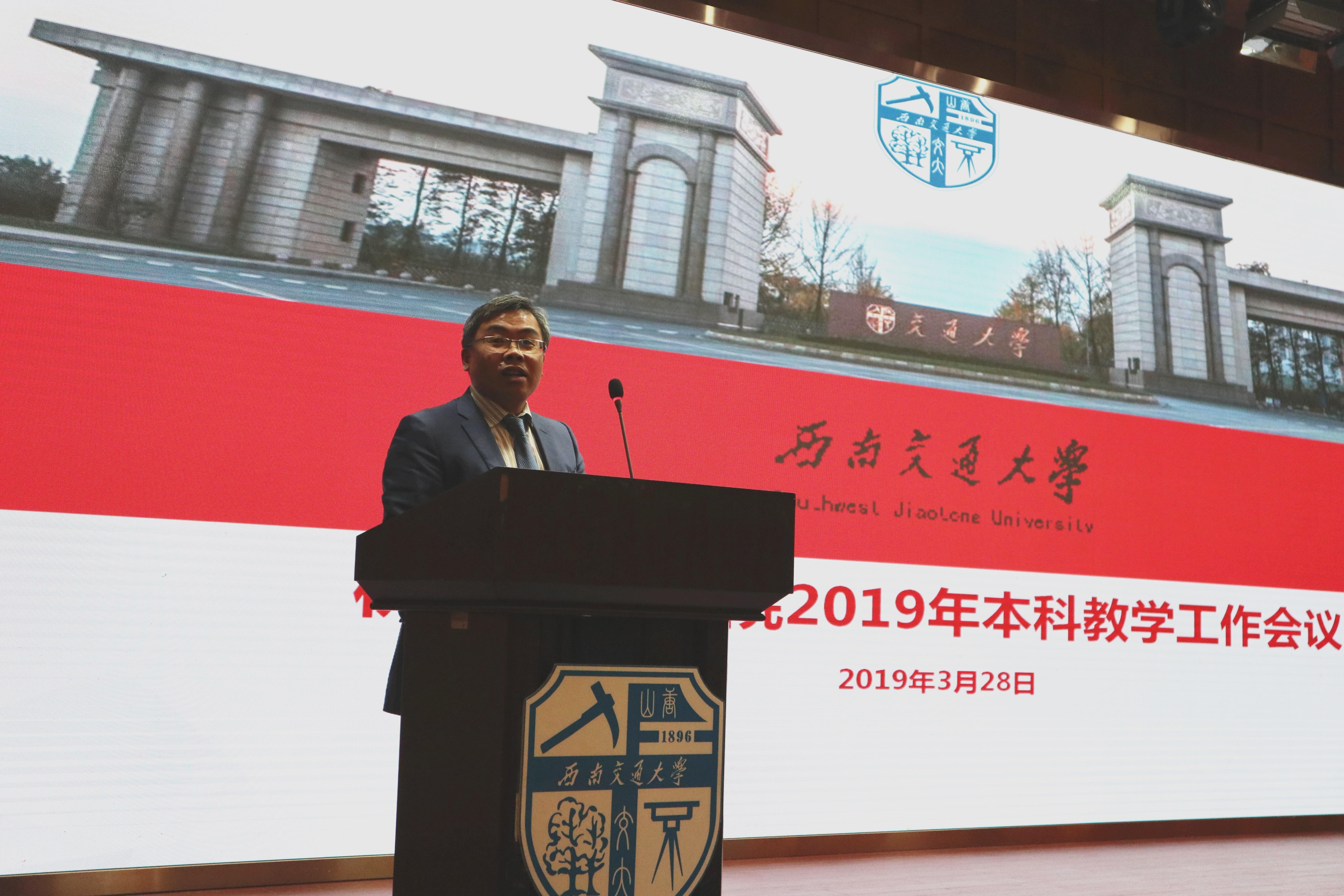 随后,会议在庄严肃穆的国歌声中正式开始。学院院长钱林茂首先作本科教学工作报告《以本为本,扎实推进本科教学工作,提升人才培养质量》。他在报告中指出要以本为本,扎实推进本科教学工作,提升人才培养质量,他强调要全面贯彻全国教育大会和习近平总书记重要讲话精神,结合学校本科教学工作的部署,深化教育教学改革,扎实推进学院本科教学工作。他回顾了目前学院本科生教育的开展情况及存在的主要问题,并提出本科教学工作的构想:一是完善专业建设顶层设计;二是探索本硕博贯通培养模式;三是建设国家一流专业;四是建设高素质本科教学师资队伍;五是强化基层教学组织建设;六是开展教育改革和教学研究;七是实施金课工程;八是深化实践体系改革;九是做实毕业设计;十是完善质量保障的组织构架;十一是修订完善教学管理制度体系;十二是健全绩效考核与分配制度;十三是推进课程思政改革;十四是强化学风建设;十五是做强创新创业教育;十六是加强本科教育教学的国际化建设。