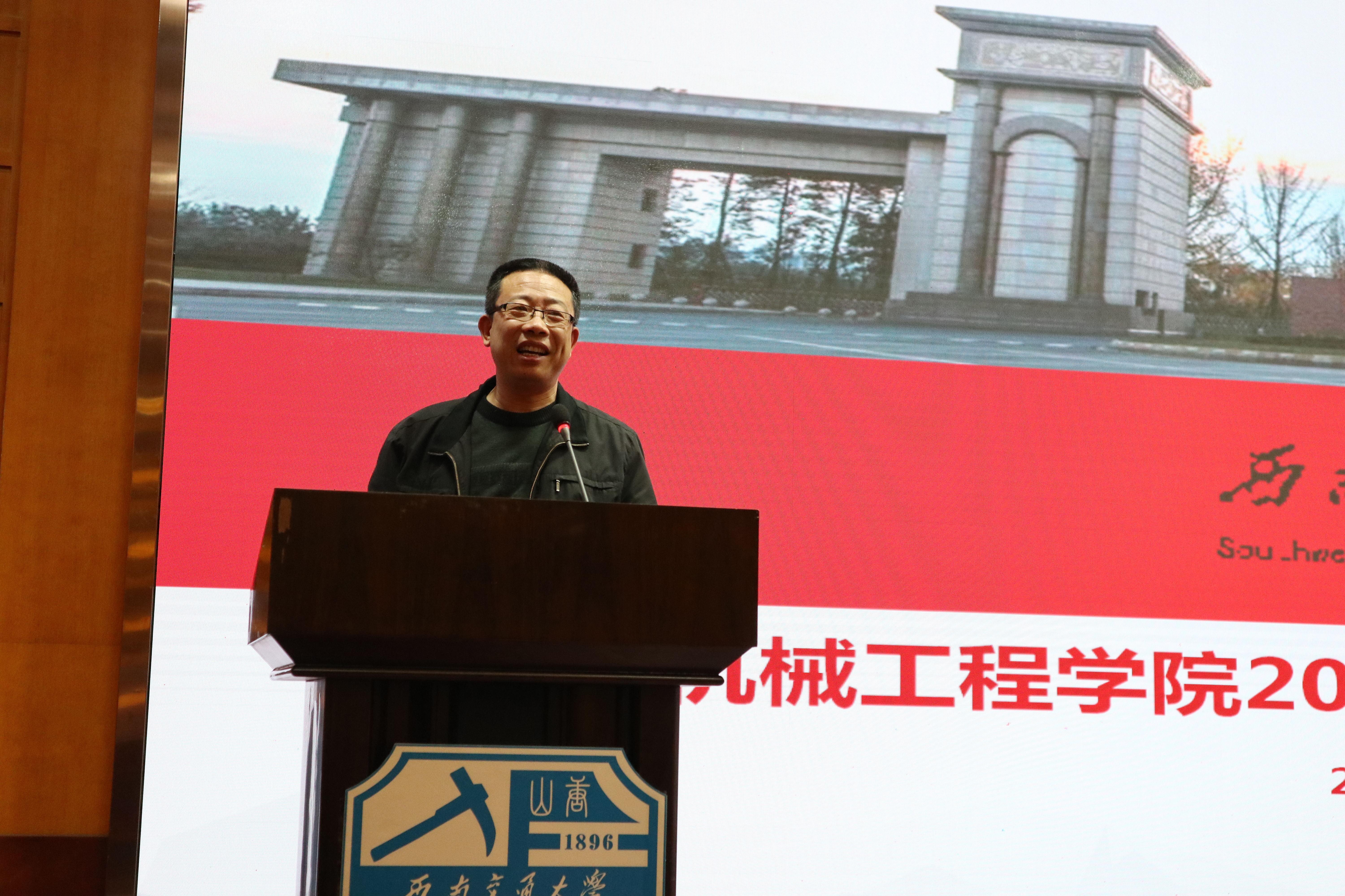 杨美传老师进行《总结专业认证经验,助力学院迈入“双万” 专业建设》分享。他结合2018年车辆工程专业认证工作开展的情况,进行了专业认证总结,并对学院实施双万专业建设提出了建议,要紧跟国家教育发展战略,从新工科、智能制造、国际化教育研究三个维度展开人才培养。