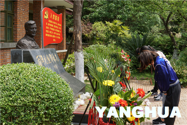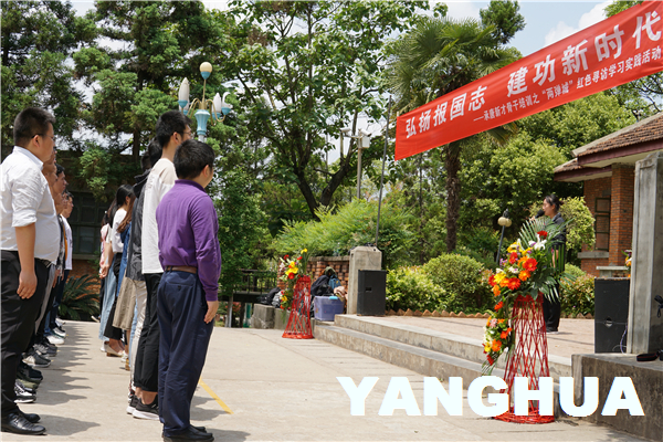 在邓稼先旧居,全体人员观看了“两弹元勋”邓稼先在此处工作时简朴的生活起居场所。作为曾有“娃娃博士”之称的邓稼先,早在26岁便已获得美国普渡大学物理学博士学位。在祖国召唤时,他毅然决然地放弃了美国的优渥生活,选择来到此地,为我国的国防事业呕心沥血,直至生命的最后一刻。在旧居前,肃穆感油然而生,大家整齐肃立,齐唱中华人民共和国国歌。随后,在研究生代表王亚梅的带领下,一同向着邓稼先铜像庄严宣誓,并进献花篮。