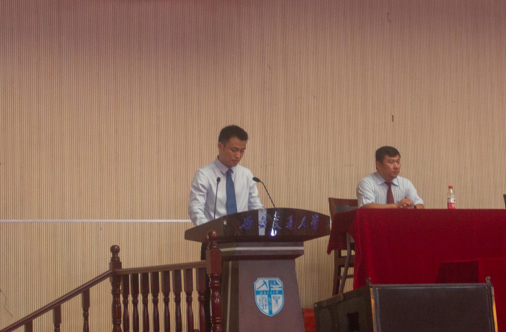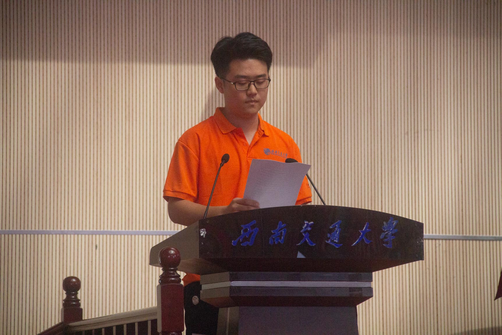 第六阶段,杨怀银辅导员发言。杨老师首先祝贺同学们来到西南交大机械学院的大家庭,提出“辅导员愿成为新生的充电宝,成为新生的冷水盆”的暖心话语。杨老师又说:“辅导员会在同学们受挫时坚定勇气,在同学们得意忘形时泼冷水。希望你们能够开启努力、纯真、奋进、善良的大学生活。”