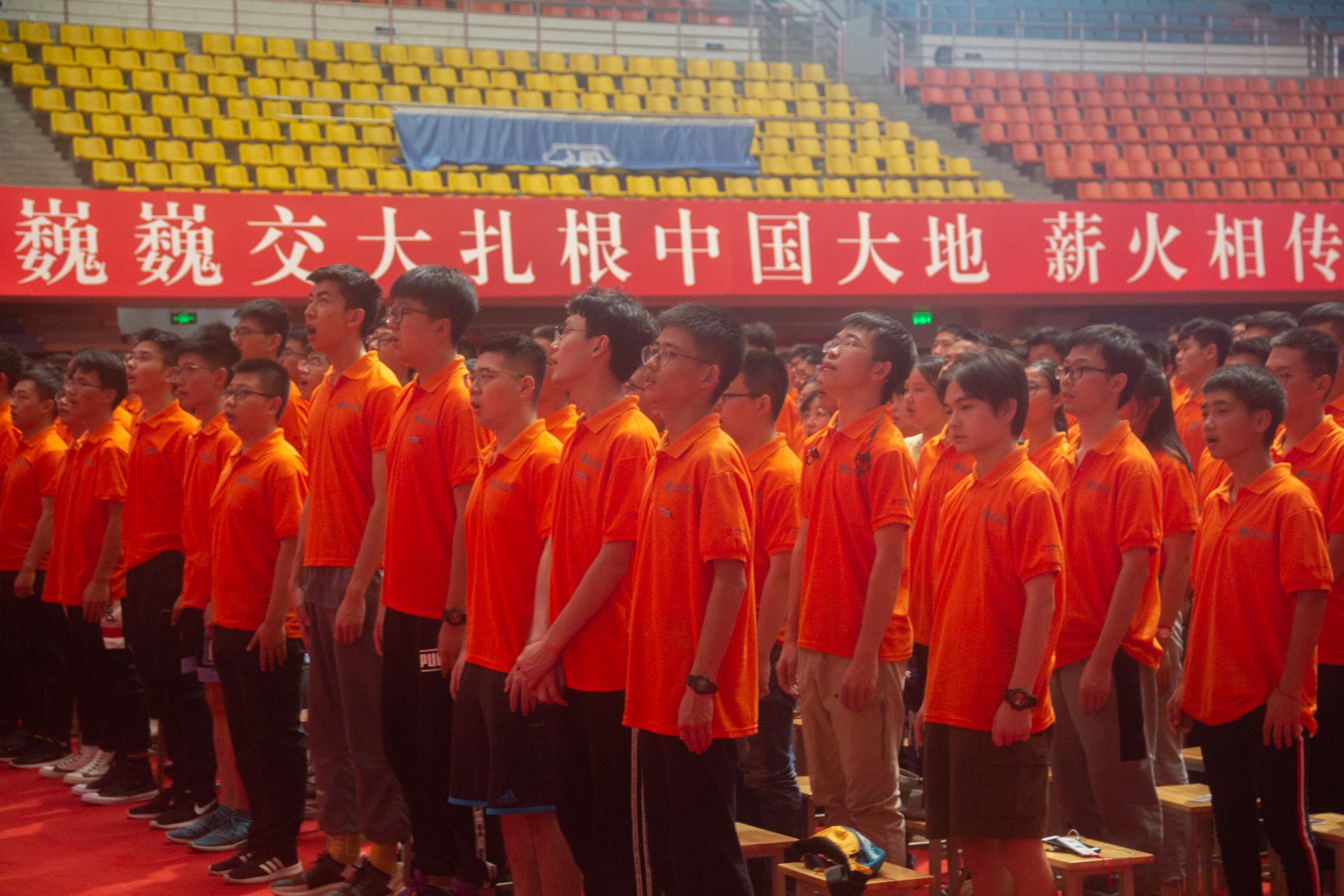 第三阶段,教师代表江亮发言。江亮老师代表青年教师对同学们的到来表示欢迎,并提出要做“三要青年”——要精勤求学,格物致知;要敦笃立志,胸怀祖国;要果毅力行,忠于祖国。江亮老师道出给同学们的话:“再坚持四年,毕业就轻松了”,再借导师的一段“七心诗”与同学共勉。随后带出华为、中兴事件,希望在球王会体育百年之际,新同学能够作为见证者与实践者为祖国伟大复兴做出贡献。
