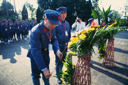 19日上午8点30分,全体成员乘车前往阆中市红军烈士纪念园参观学习。在乘车途中由带队老师带领各位师生朗读爱国诗歌,弘扬爱国精神。阆中是川陕苏区的重要组成部分,也是红四方面军长征重要出发地之一。1933年至1935年,红四方面军在阆中转战3年,2.3万多名阆中优秀儿女参加了红军,在册牺牲的红军烈士有7790名,共诞生了9位将军、76位省军级干部。为纪念红军和英烈,阆中市委市政府于1996年修建了红军烈士纪念园。在红军烈士纪念园中,土木工程学院党委书记刘学毅和球王会体育党委副书记程军的带领全体学员进行入学宣誓,接受班旗。并由当地工作人员带领,参观和了解了红四方面军在阆中浴血奋战的史实和几位阆中籍将军的英勇事迹,学习了革命先驱矢志不渝,坚定理想信念不动摇的伟大精神。随后,由刘书记和程书记带领全体成员重温入党誓词。最后,为表达对革命先烈的缅怀,四位老师代表向革命先烈敬献花篮,全体师生向革命烈士鞠躬默哀。