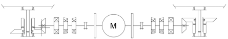 3. 驱动系统方案分析,为实现100%低地板,转向架使用的是独立旋转车轮,确定采用纵向耦合驱动系统最为合适,绘制驱动系统的原理图。