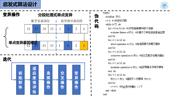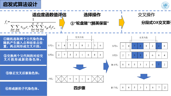为了较为清晰简洁地说明本文启发式算法的设计过程,以下将以图片形式进行简要说明。遗传算法主要包括初始解群体生成、适应度值计算、选择操作、交叉操作及变异操作等步骤,经过多次迭代,形成最终解。