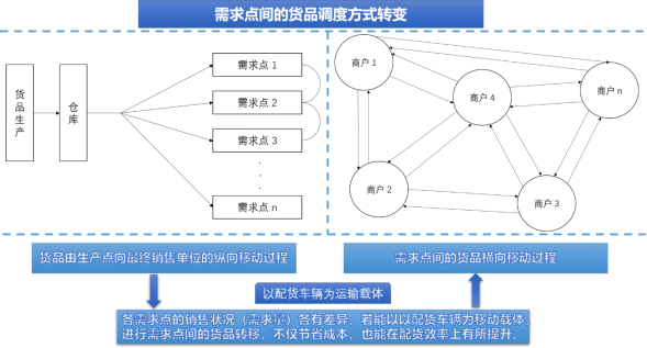 基础VRP问题及对应数学模型、同时配集货问题及相关理论均与本文研究问题有一定的相关性,而同时取送货的性质赋予了该配货策略对于需求点间货品调度的移动属性,这对于配货车辆路径选择有着强力约束,也增加了一定的复杂性。