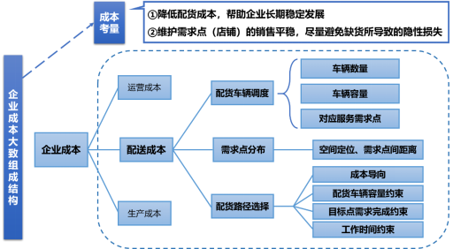 “仓库—门店”的配送模式屡见不鲜,也是现代社会生产销售行业较为常规的运营模式。但是,在货品配送的过程当中,存在着配货效率低下、送货路线冗余的情况,在以盈利为目的的销售行业而言,降低成本增加盈利无疑是意义重大的改进。