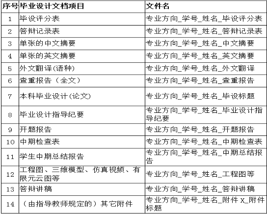 (1)学生提交的资料应为答辩后整改的最终文档。