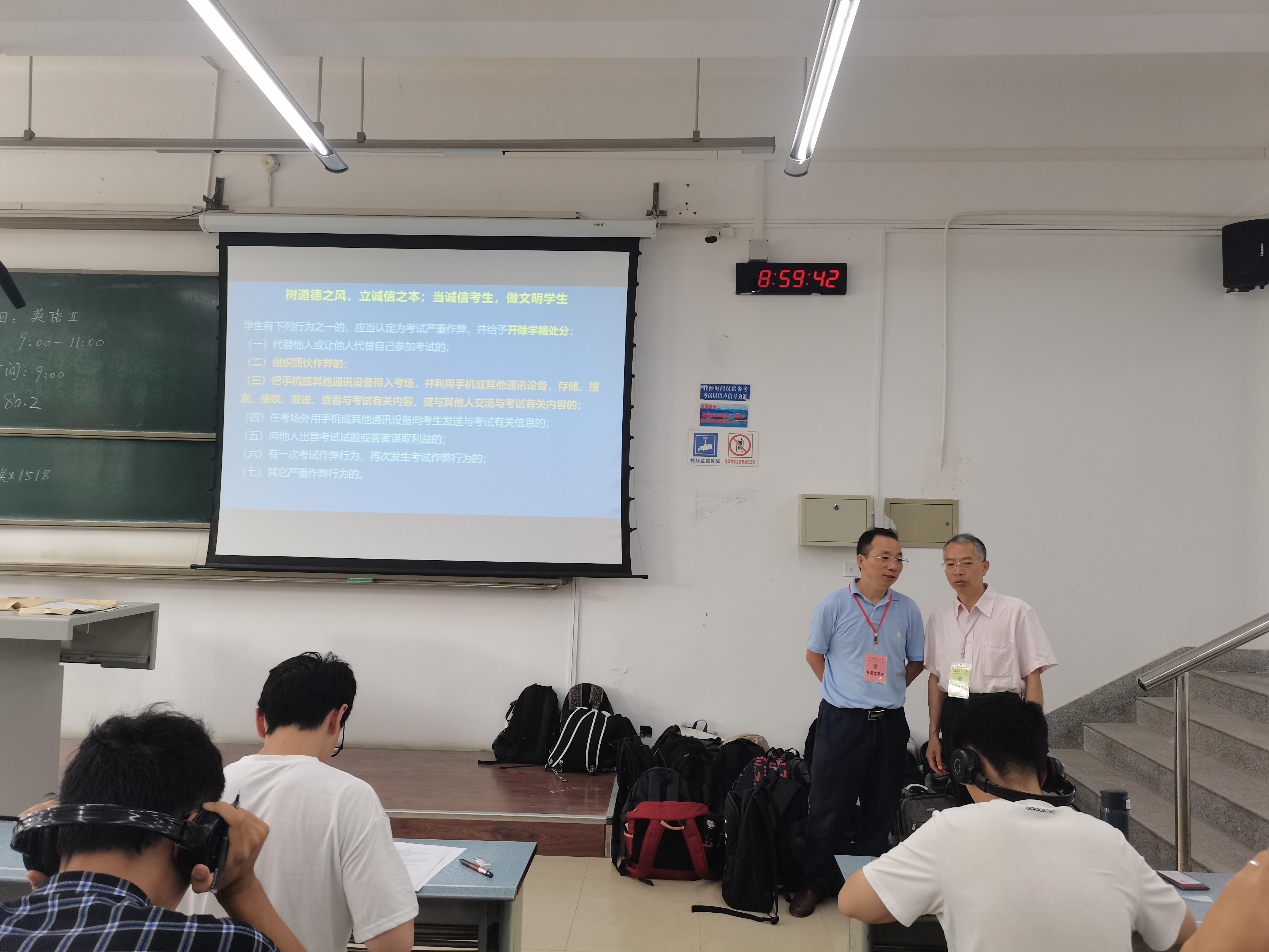 学院领导高度重视期末考试工作,在考试前对教师监考职责培训、学生诚信教育工作等进行了部署,并安排党政领导进行期末考试巡考工作。28日上午,学院副院长天田怀文带队进行犀浦校区期末考试巡考工作。在巡考中,田怀文对21个考场进行一一巡视,与监考教师交流,了解期末考试工作准备情况等。