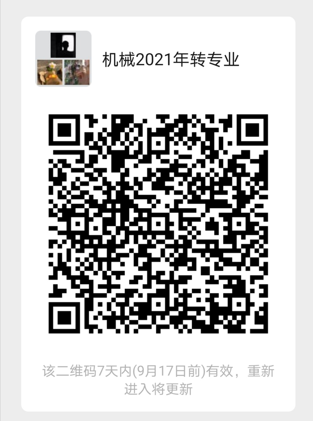 5.其 他:为方便后续工作开展,请参加面试的同学扫码加入“机械2021转专业”微信群。