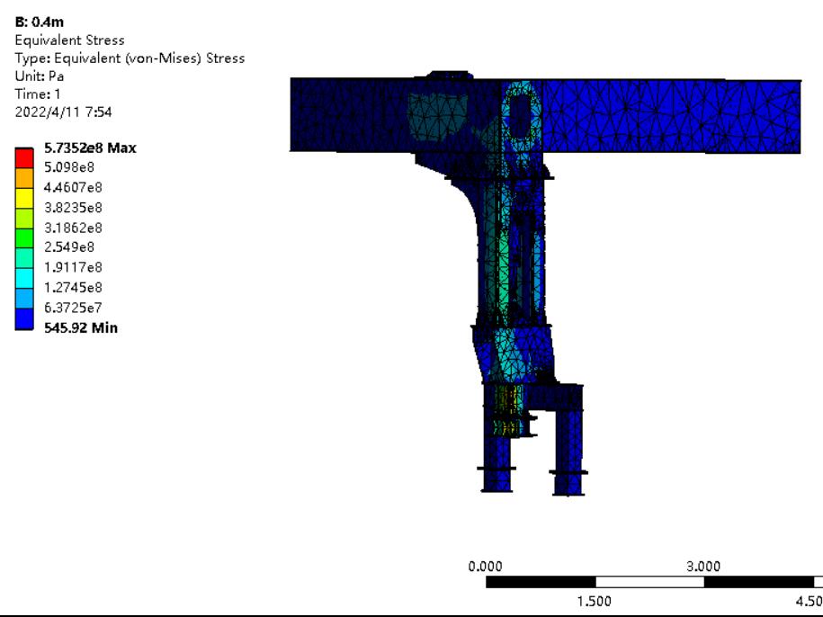 (5)基于有限元软件ANSYS,针对台车结构的强度、刚度和模态进行仿真;