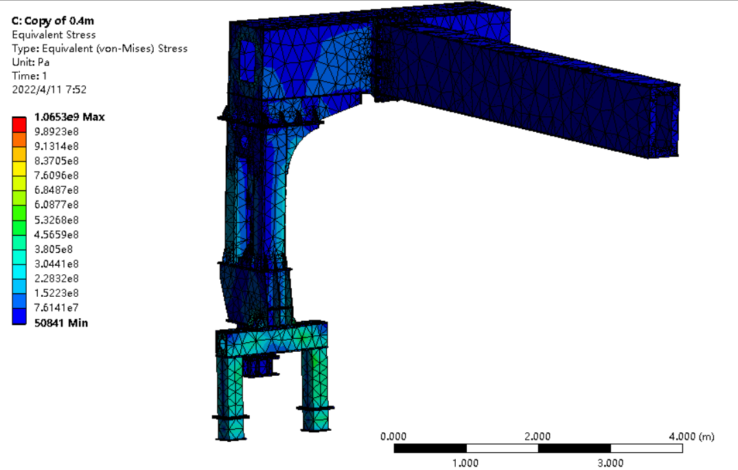 针对不同工况,将四分之一门架模型导入ANSYS Workbench进行有限元分析。