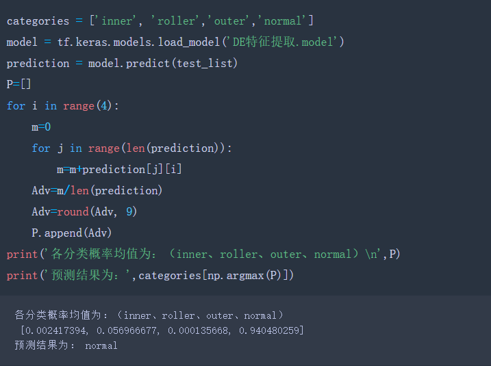 (4)利用训练好的基于一维卷积神经网络的轴承故障诊断模型进行故障诊断;