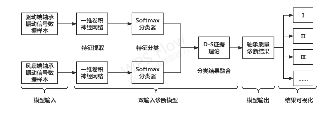 (5)应用D-S证据理论对风扇轴承诊断结果和驱动端轴承诊断结果进行数据融合;