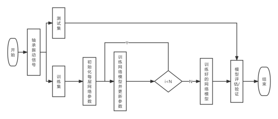 滚动轴承故障诊断网络模型流程图如下: