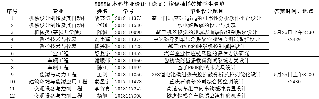 (3)请校抽样答辩学生在5月24日之前将答辩ppt交由指导老师审阅,5月25日12:00前将答辩PPT和论文发送至学院邮箱jxbkjw@swjtu.edu.cn。