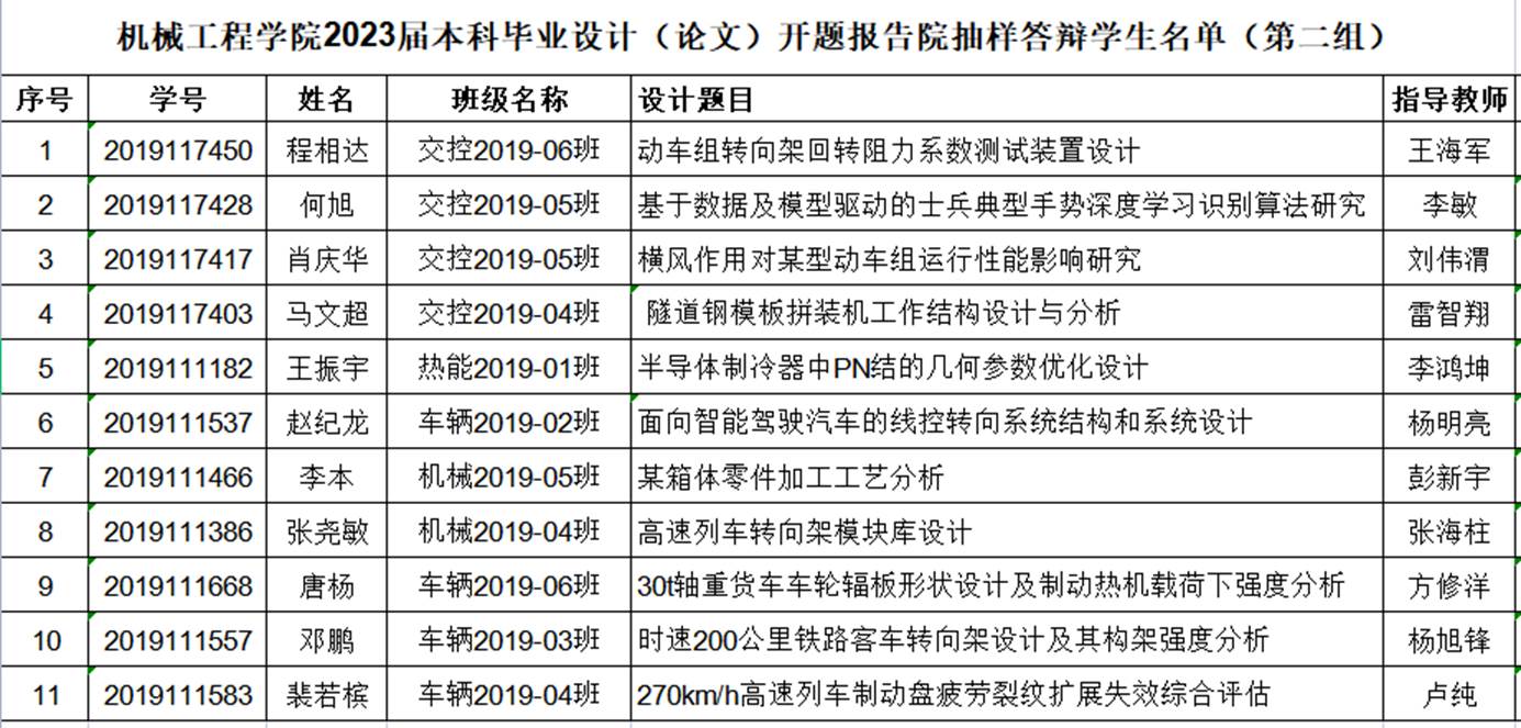 系所普查时间为2023年1月2日-1月13日,各系所参照学院抽查阶段的工作要求,组织2023届本科生毕业设计(论文)开题报告答辩工作,要求覆盖全体学生。请各系所于12月30日前将《球王会体育2023届毕业设计开题答辩信息统计表》发送至邮箱jxbkjw@swjtu.edu.cn。